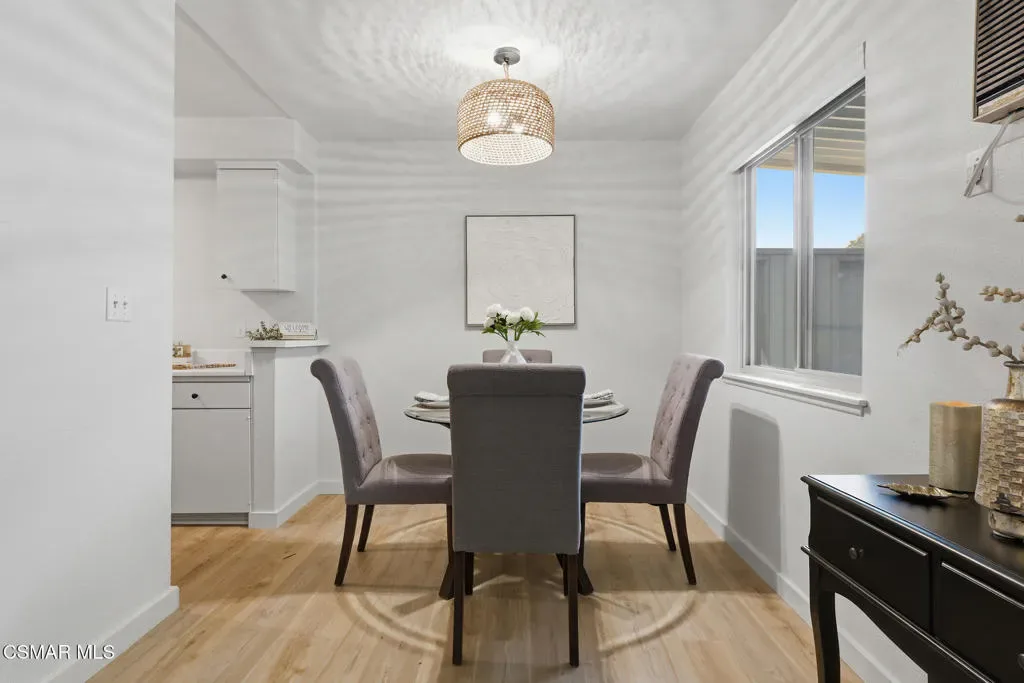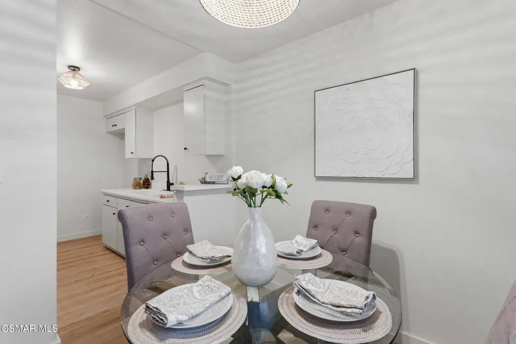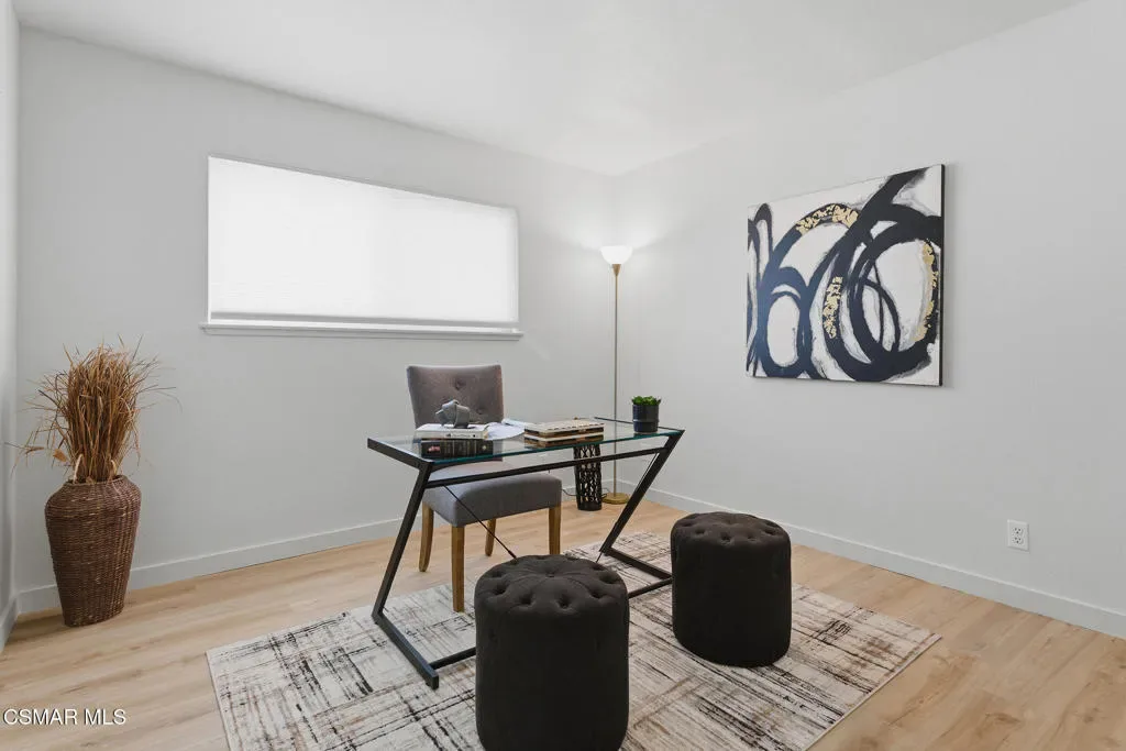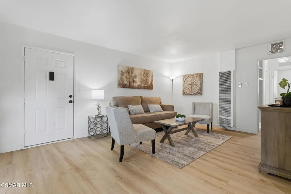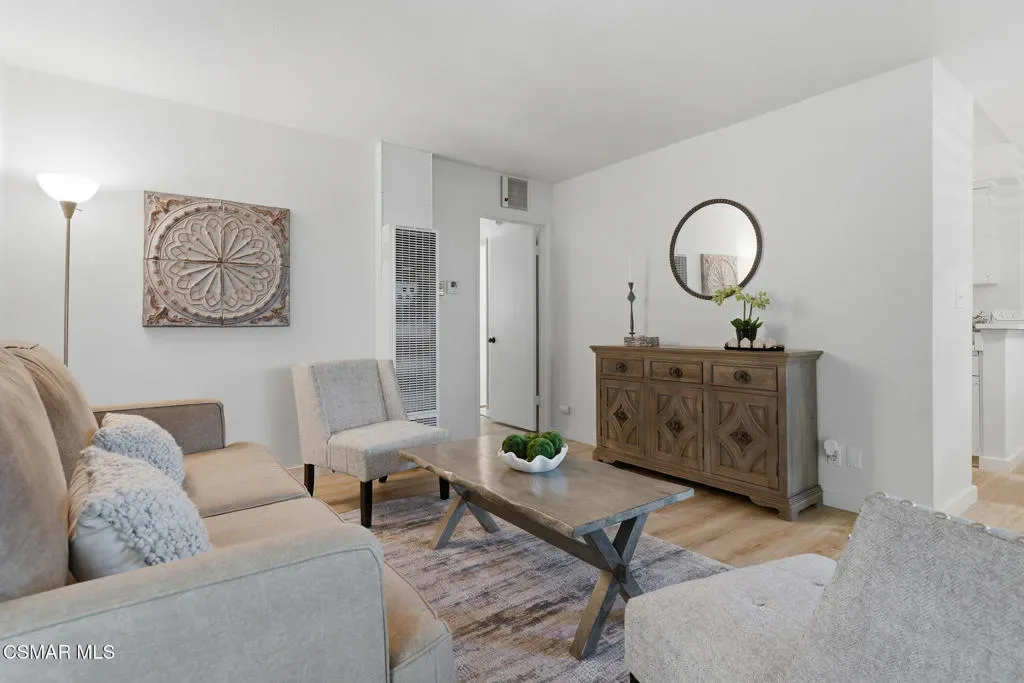 Step into modern comfort at its best–this bright, airy 2-bed, 1-bath home in Fountain Park’s gated community feels brand-new. Fresh wood-look flooring runs wall-to-wall, new lighting, window treatments, and paint keep everything crisp. Kitchen: New gas range, sleek faucet, tons of cabinets. Bath’s updated too–clean, spa-like. Best part: your own huge covered patio, right off the living room. First-floor, single-level living–no stairs from your dedicated carport to the door. HOA covers taxes, insurance, trash, water, sewer, pest control, and maintenance–zero surprises. Pools, sport court, putting green, BBQ, playground–all yours. Walk to The Village, Topanga Plaza, Warner Park, concerts in the park. This one’s going fast.