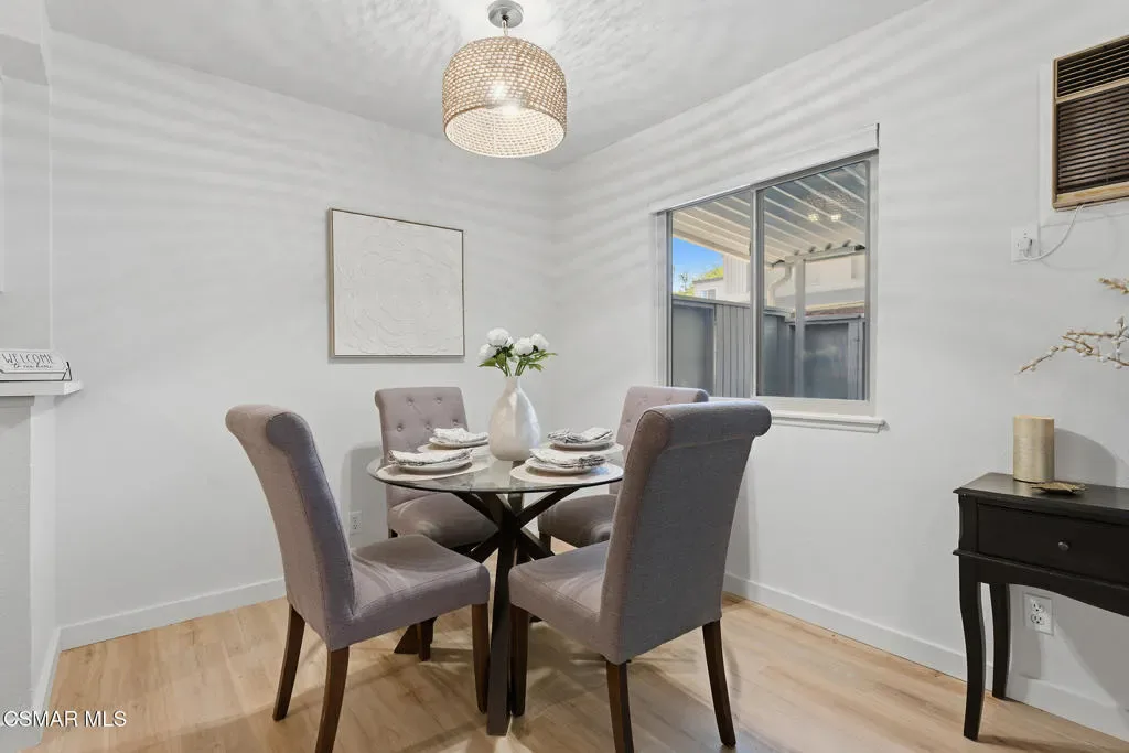 $5000 credit from Seller to Buyer for refrigerator and air conditioner. Step into modern comfort at its best–this bright, airy 2-bed, 1-bath home in Fountain Park’s gated community feels brand-new. Fresh wood-look flooring runs wall-to-wall, new lighting, window treatments, and paint keep everything crisp. Kitchen: New gas range, sleek faucet, tons of cabinets. Bath’s updated too–clean, spa-like. Best part: your own huge covered patio, right off the living room. First-floor, single-level living–no stairs from your dedicated carport to the door. HOA covers taxes, insurance, trash, water, sewer, pest control, and maintenance–zero surprises. Pools, sport court, putting green, BBQ, playground–all yours. Walk to The Village, Topanga Plaza, Warner Park, concerts in the park. This one’s going fast.