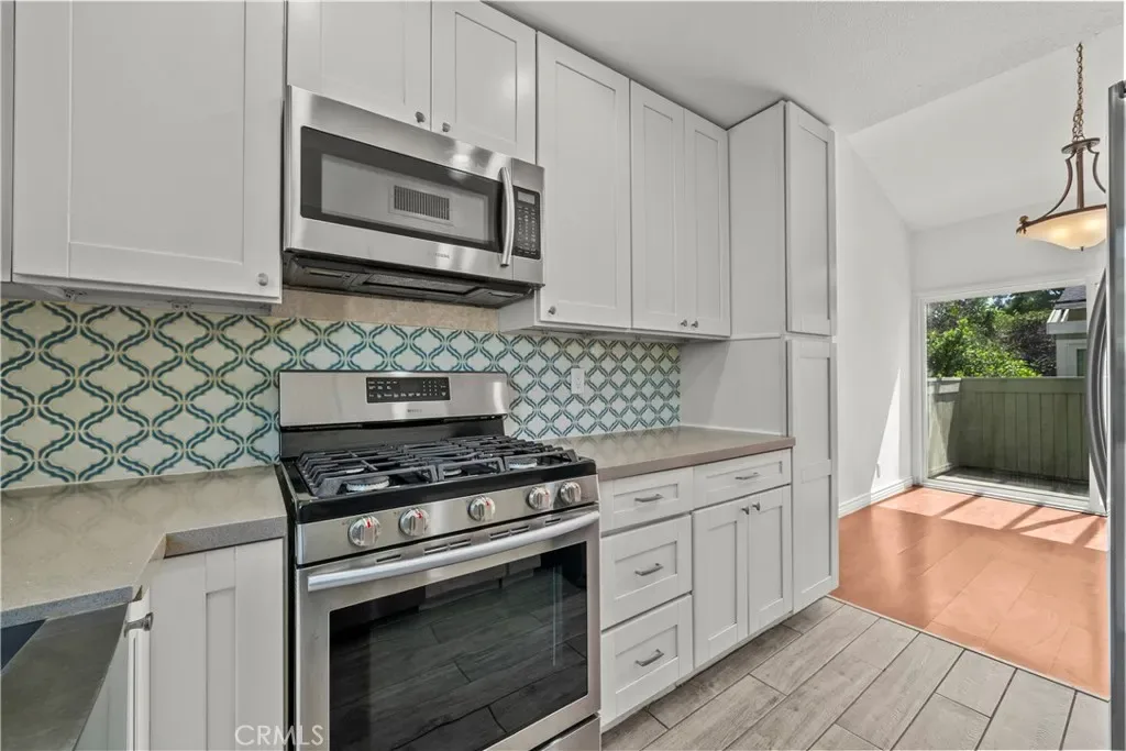Welcome home to 22117 Burbank Blvd #5, a light-filled end unit townhome located in the well maintained Woodland Village community of Woodland Hills. This 2 bedroom, 1.5 bathroom residence offers 961 sq. ft. of comfortable living space along with an attached two car garage, providing both convenience and functionality. Step upstairs to find a bright and inviting living space featuring warm wood style flooring, abundant natural light, and a cozy fireplace that anchors the living room. The layout flows seamlessly to a private balcony, creating an ideal setting for both everyday living and relaxing outdoors. The kitchen offers a clean and updated design with white cabinetry, stainless steel appliances, a farmhouse-style sink, and a stylish backsplash. The adjacent dining area is filled with natural light, making it a comfortable space for both daily use and entertaining. Both bedrooms are well sized and filled with natural light. The full bathroom has been recently remodeled with modern finishes, providing a fresh and move in ready feel. Additional highlights include a brand new water heater and the convenience of an included washer and dryer. The Woodland Village community offers resort-style amenities including two pools, a spa, and a tennis court, all surrounded by mature landscaping. Conveniently located near The Village at Topanga and Ventura Blvd, this home is just moments from some of the area’s best shopping, dining, and entertainment. Exciting future project in the area is the Rams Village at Warner Center. A great opportunity for buyers looking for comfort, natural light, and a well-located home in a desirable community.