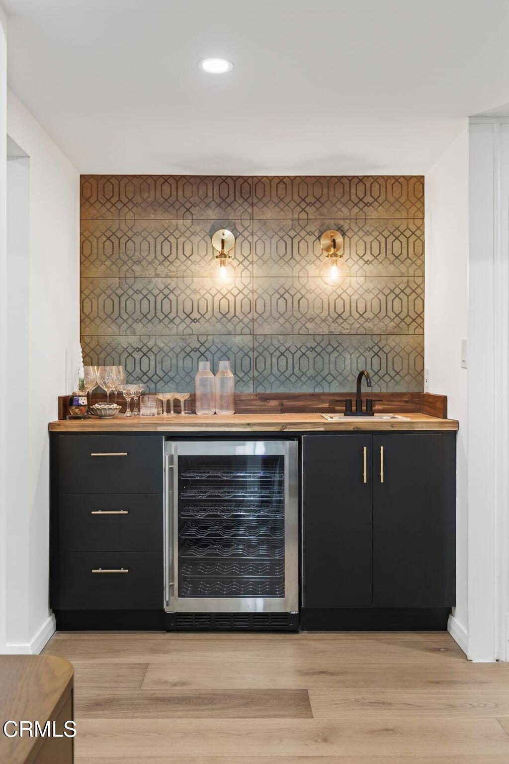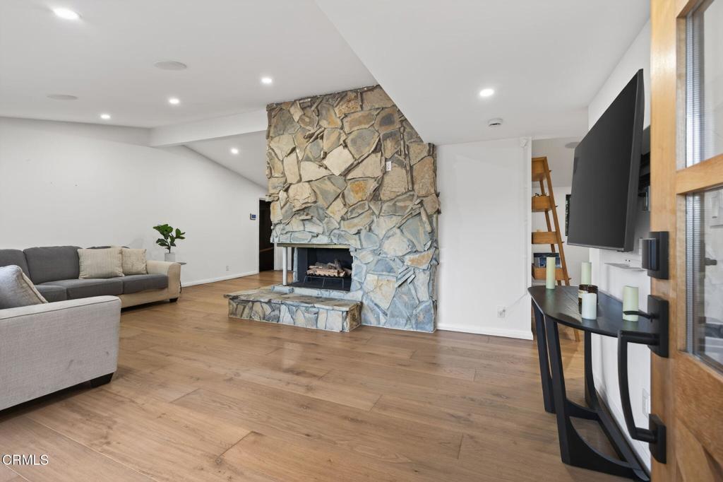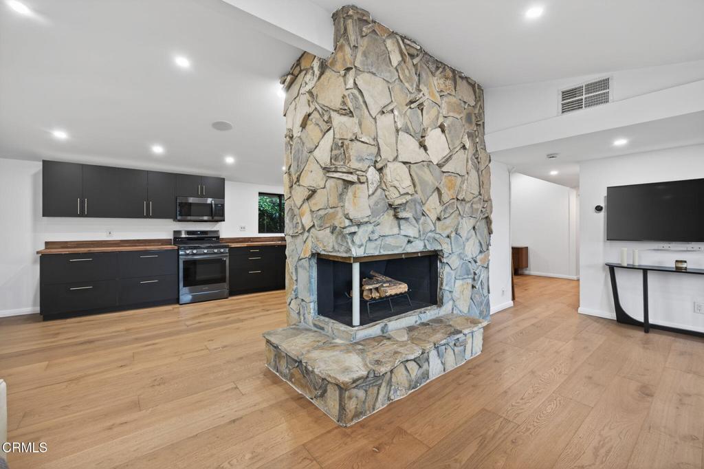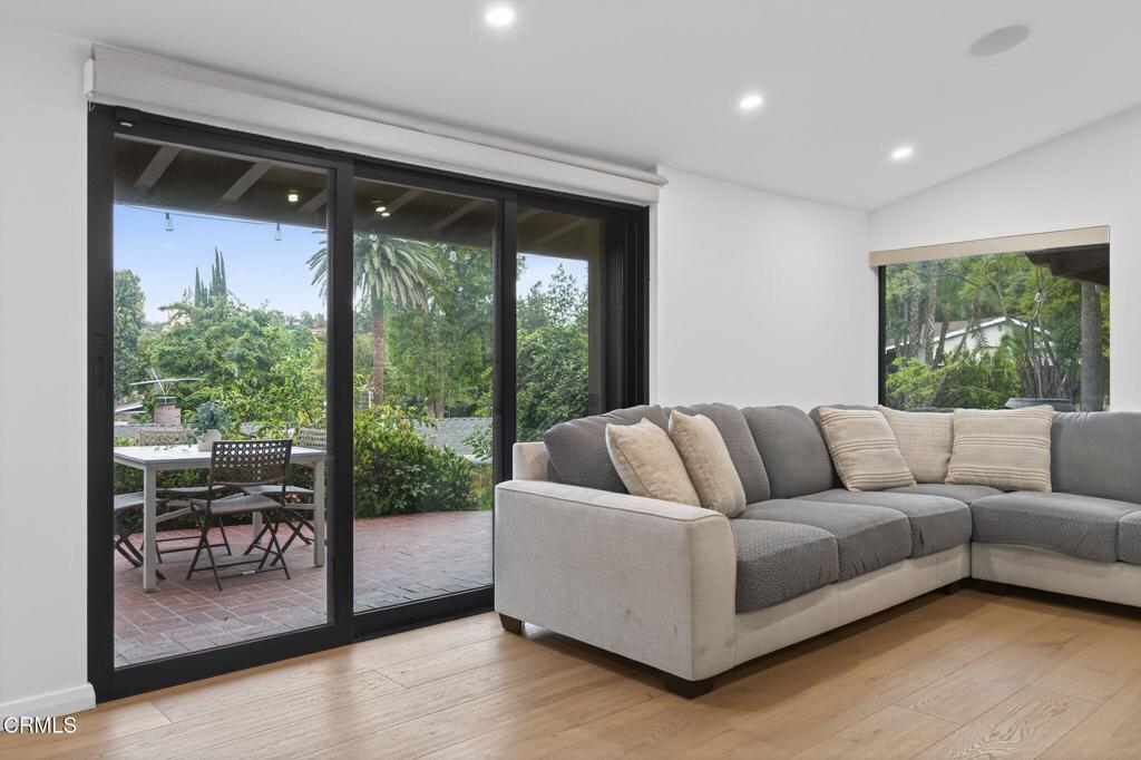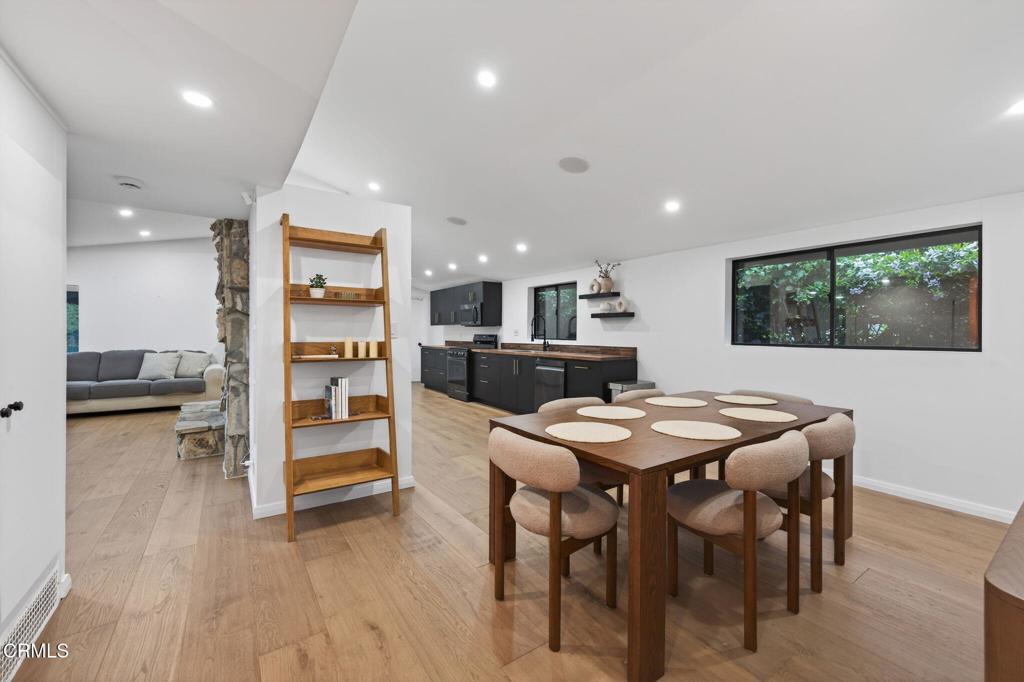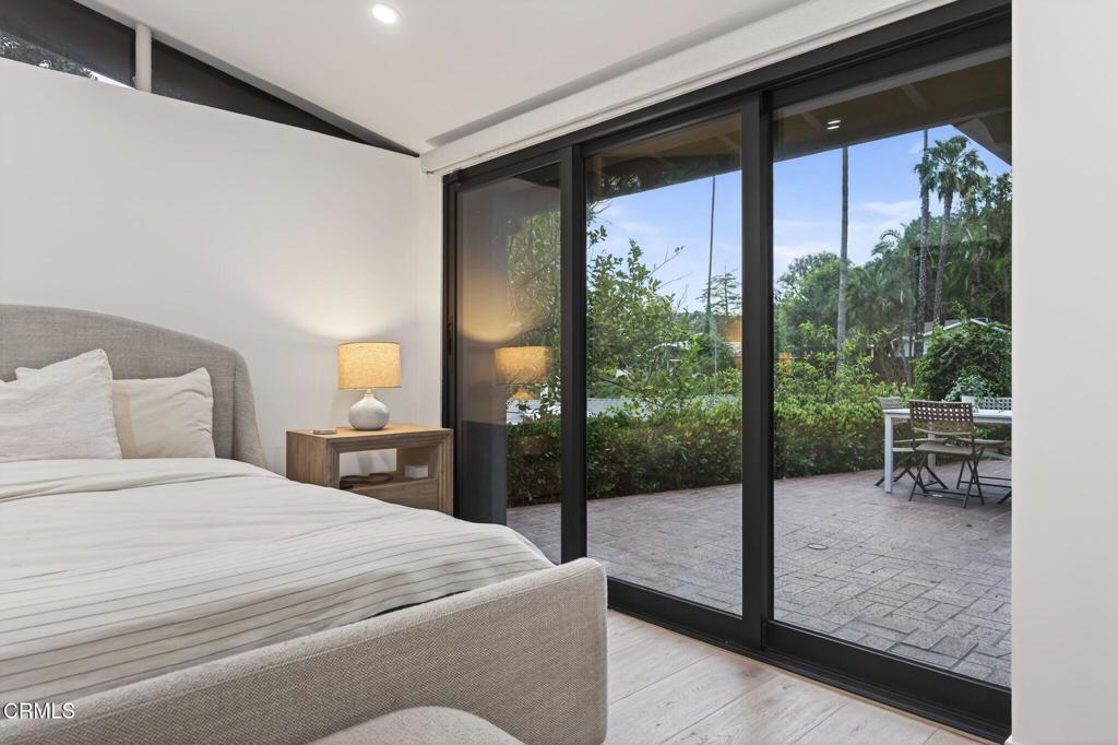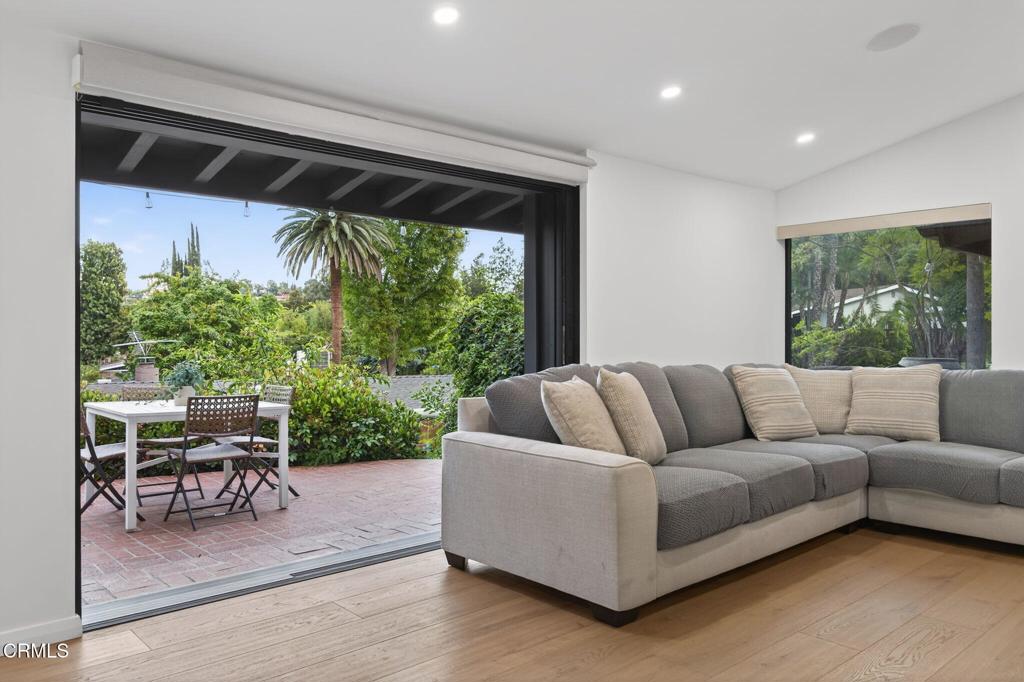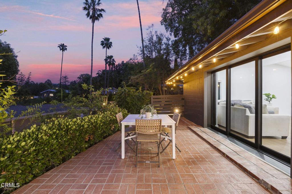 Welcome to 22261 Ybarra Road – an exceptional, single-level modern retreat set in one of Woodland Hills most sought-after neighborhoods! The home has been thoughtfully redesigned with a sleek, contemporary aesthetic, and the floorplan offers the perfect blend of indoor/outdoor living! As you enter, you’re greeted by an open-concept layout filled with natural light, highlighted by expansive windows, clean architectural lines, and vaulted ceilings. The kitchen was previously remodeled and features modern black cabinetry w/satin gold hardware, butcher block style counters, and matching black stainless steel appliances. The kitchen flows in the adjacent dining area, which has a custom built wet bar with wine fridge. The primary bedroom offers a walk-in closet and en suite bathroom complete with custom tiled shower, chic modern vanity, and large marble tiled floor. Both of the guest bedrooms are generously sized and have double doors leading to the backyard. The guest bathroom was also previously remodeled and has a gorgeous modern style vanity, quartz counters, satin gold fixtures, and soaking tub w/tile surround. Other highlights of the home include central heat & AC, flagstone fireplace, built-in surround sound, durable white oak floors, and custom ‘accordion’ style pocket doors in both the living room & primary bedroom. The home’s exterior is the perfect combination of lush landscaping, beautiful views of the surrounding area, and a low maintenance backyard complete with artificial turf & above ground spa. The home’s ideal ‘south the boulevard’ location is just minutes to Topanga Canyon Mall, Warner Center, fine dining restaurants, and top-rated schools. Come take a look before it’s gone!