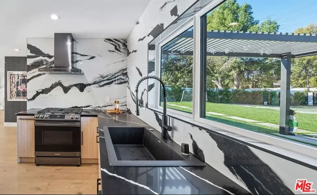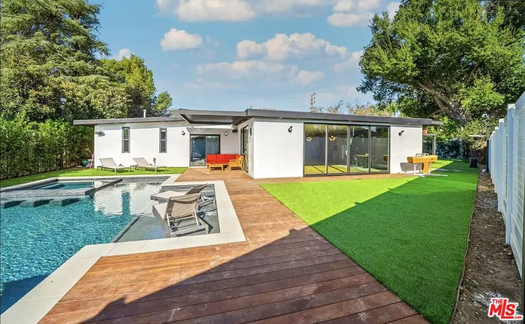 ** FULLY FURNISHED AND FULLY EQUIPPED ** Walnut Acres adjacent and set on an expansive 19,000 sq ft flat lot, this gated estate offers privacy, scale, and endless opportunity in one of Woodland Hills’ most desirable pockets.Arrive through automatic gates to a grand circular driveway framed by mature trees and impressive frontage, offering substantial parking and a true sense of arrival. The property’s layout and lot size make it ideal for elevated entertaining, luxury living, or permitted events and productions.Inside, the home features granite countertops, newer windows, integrated surround sound, smart home technology with security cameras and Nest system, and custom touches including a bold Los Angeles mural that adds character and edge. The expansive primary suite serves as a private retreat, complete with a spa-style double shower and an oversized walk-in closet.The backyard is a true resort-style escape. An oversized pool and jacuzzi with sun beds anchor the space, complemented by a full outdoor kitchen setup with two grills, refrigerator, sink, and outdoor heater designed for effortless indoor-outdoor living. A private basketball court, sprawling grounds, and generous open space create a setting that feels both luxurious and versatile.With its scale, privacy, and premier location, this property delivers the rare combination of lifestyle, flexibility, and future potential a standout opportunity in Woodland Hills.
