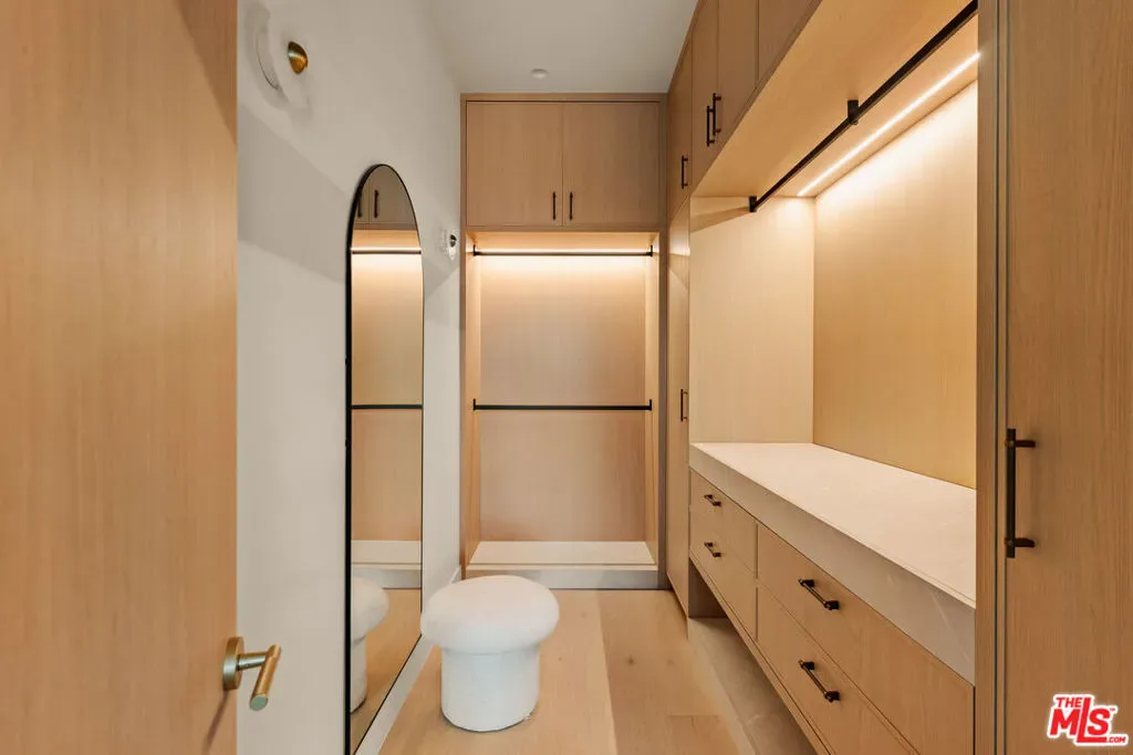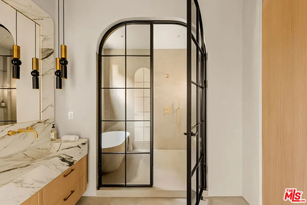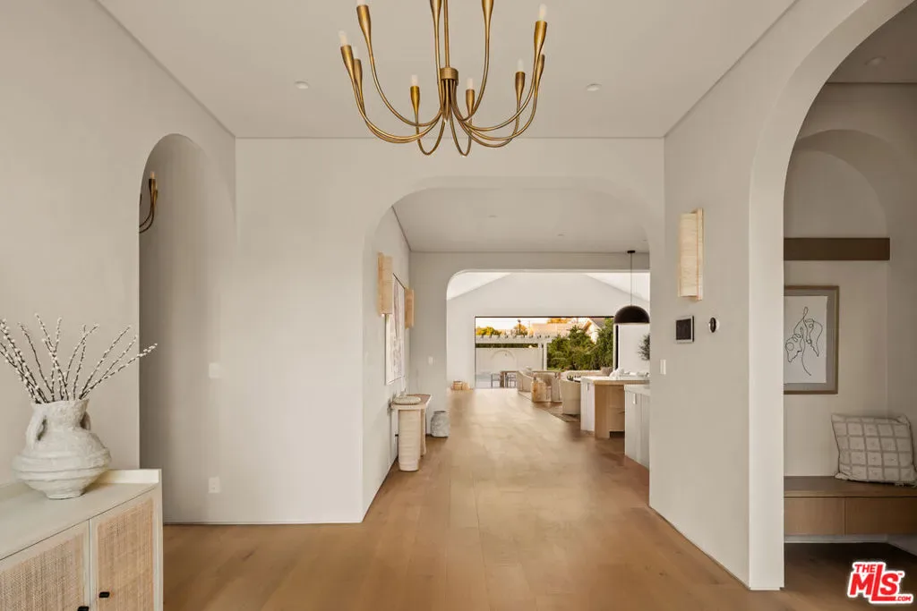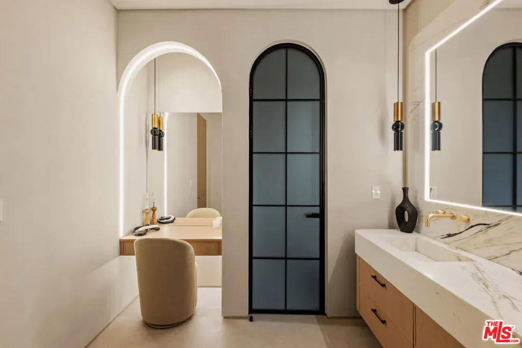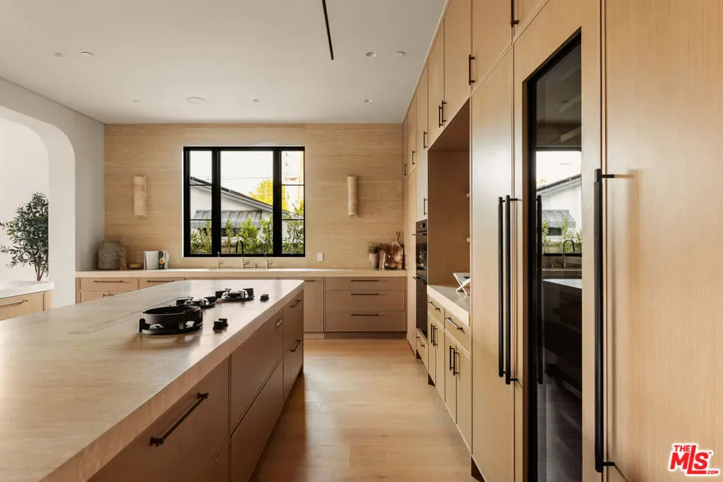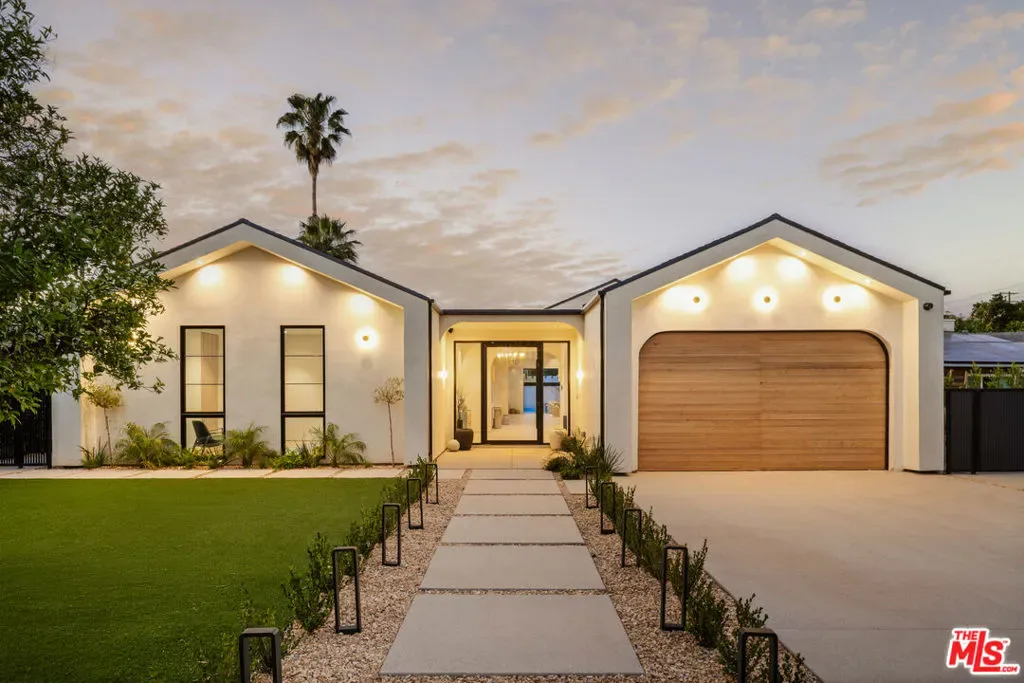 Elevated single-level resort-style residence blending warm natural textures with refined modern design. A soft neutral palette, custom millwork, arched architectural details, stone finishes, and wide-plank wood flooring create a cohesive, magazine-worthy aesthetic throughout. Vaulted ceilings with exposed beams and walls of glass fill the open-concept layout with natural light while creating seamless indoor-outdoor flow.The designer kitchen serves as the heart of the home, anchored by an oversized island with seating, integrated cabinetry, sculptural pendant lighting, and a dramatic stovetop feature wall wrapped in custom stone with a sleek vent hood delivering both striking design and everyday functionality.The approximately 4,000 sq. ft. residence offers four bedrooms and four-and-a-half bathrooms, including a luxurious primary suite designed as a private retreat. The spa-inspired bath features natural stone finishes, refined fixtures, soft ambient lighting, and dual walk-in closets. Secondary bedrooms and baths continue the home’s calm, elevated design aesthetic.Set on an approximately 18,000 sq. ft. lot, the backyard unfolds as a private resort-style oasis featuring a sparkling pool and spa with Baja shelf, a sunken fire pit lounge, expansive entertaining patios, and a private sport court. A detached guest house with a private bathroom offers ideal flexibility for guests, a home office, or creative studio.A rare single-level offering that seamlessly combines modern architecture, comfort, and resort-style living.