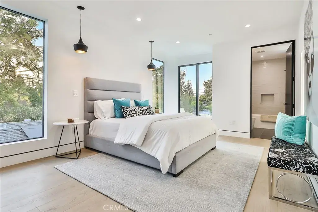EXQUISITE NEW-CONSTRUCTION FAMILY-ORIENTED ESTATE. Located in the heart of Walnut Acres, arguably the premier family community in Woodland Hills. A haven for entertainment industry types, influencers, and athletes (Rams Village 7 minutes away). Close proximity to highly rated elite public, faith-based, and private schools…as well as diverse houses of worship, beaches, parks, and youth sports. A stone’s throw from destination shopping such as The Commons at Calabasas, and luxury estate communities of Hidden Hills and Calabasas. This architectural masterpiece seamlessly blends contemporary sophistication with the warmth of home, offering an unparalleled level of craftsmanship and resort-style living. From the moment you step inside, soaring ceilings and voluminous rooms create a grand yet inviting atmosphere. The 1200 square-foot primary suite is a private retreat, featuring three balconies, a 16′ x 16′ walk-in closet, a spa-inspired bath with a step-in triple shower, and a serene sitting area. A full wall of retractable glass opens completely, transforming the space into an indoor-outdoor sanctuary. The chef’s kitchen is designed for both function and elegance, featuring top-of-the-line Wolf and Sub-Zero appliances, custom cabinetry, sleek countertops, an espresso station, and expansive walk-in pantry. The private home theater is a cinematic dream, boasting a 100-inch screen and a 12-speaker Dolby Atmos surround sound system, expertly designed by a Grammy Award-winning producer. The seamless transition between indoor and outdoor living is achieved through three massive glass pocket doors that open to a breathtaking backyard. The infinity-edge salt-water pool, grand spa, cascading waterfall, and firepit set the stage for luxury entertaining, while multiple seating and lounging areas create an atmosphere that rivals the world’s finest resorts. The full outdoor kitchen, complete with a pizza oven, makes alfresco dining an unforgettable experience. Beyond the stunning cabana complex with a full bathroom, an expansive natural grass yard provides ample space for recreation, training, or hosting events. Each bedroom is ensuite with a private patio or balcony, ensuring privacy and comfort throughout. Additional features include four fireplaces, a Zen area, ample closets and storage, and a separate office-suite entrance. TOO MUCH MORE TO LIST HERE. [Note: This property also includes architectural plans with permits issued, for 2 bedroom, 2 bath, 2-car garage ADU]