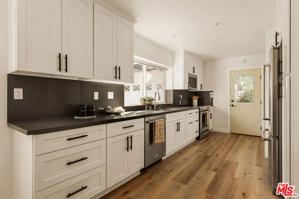 Welcome to this newly remodeled home set on a rare street-to-street lot in Walnut Acres. Upon entering, a bright living and dining area flows into the upgraded kitchen with new appliances, sleek countertops, and a charming herb garden window overlooking the front yard. The spacious family room opens to a flat, grassy backyard with fruit trees, multiple patios, and endless potential to create your own outdoor retreat, ADU, or pool and spa. A split floor plan offers two bedrooms and one bath on each side of the home, with the private primary suite at the rear overlooking the backyard. The primary retreat features dual vanities, a shower/tub combo, and generous closet space.Ideally located just minutes from The Village and Calabasas Commons, this home offers both lifestyle and long-term value. Recent upgrades include updated electrical, recessed lighting, new flooring, remodeled bathrooms, appliances, and an insulated two-car garage with an electric vehicle charger.