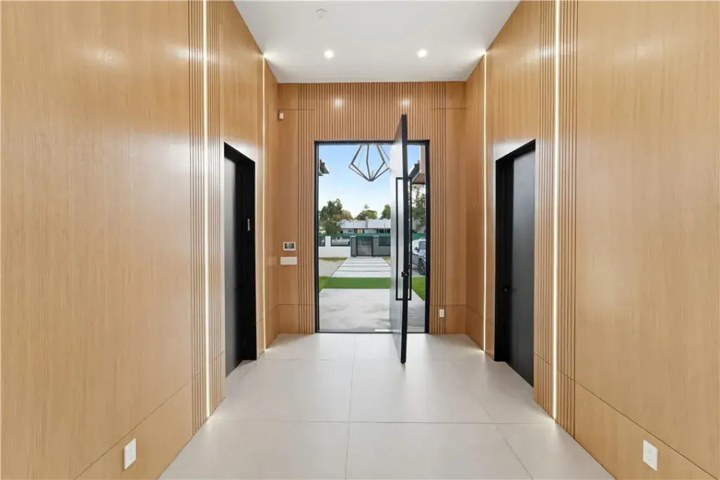 Unveiling a remarkable single story compound estate nestled in Woodland Hills’ coveted Walnut Acres enclave. On a 21,000 SF lot, this 5,000 SF home includes 5 bedrooms all loaded with en suite bathrooms and ample sized closets. Setback far from the street and behind a double gate entry is a massive parking area for up to 9 cars and future improvements will be made for a portion of the driveway to be covered from above. As shown in the renders, this house is on its way to completion and will include a dream entertainers yard- the heated pool and spa is in. Next up will be a half sports court with a net, a luxurious outdoor pavilion, and a fire pit with integrated seating. The pavilion will include a full outdoor kitchen, fireplace and lots of seating area. Inside of the home, a giant pivot door opens up to 13 foot high ceilings, lined by custom panel walls complimented with LED lighting, and natural porcelain floors. This is a fully integrated Control4 smart home with camera, lighting, surround sound, and AC control all from your phone and 2 built in tablets. The home includes a theatre room, giant walk in pantry, laundry room, an additional powder bathroom room for guests, wine wall, and so much more. The master bedroom has direct access to the dream yard and the Jr master also has access to the outdoors. This floorpan is perfectly situated for big families and every bedroom has significant space in between each other. Located minutes from award-winning El Camino Charter High School, the Topanga Mall and The Village, and the premier boutiques and dining along Ventura Boulevard. Modern sophistication and unmatched convenience in one of Woodland Hills’ most sought-after neighborhoods.