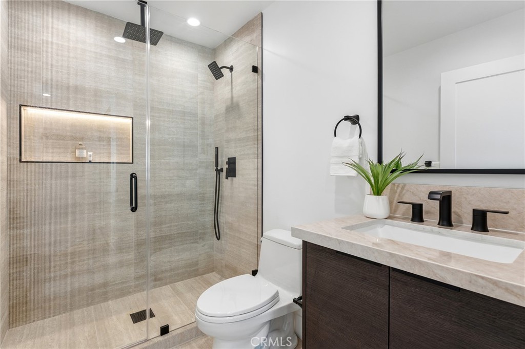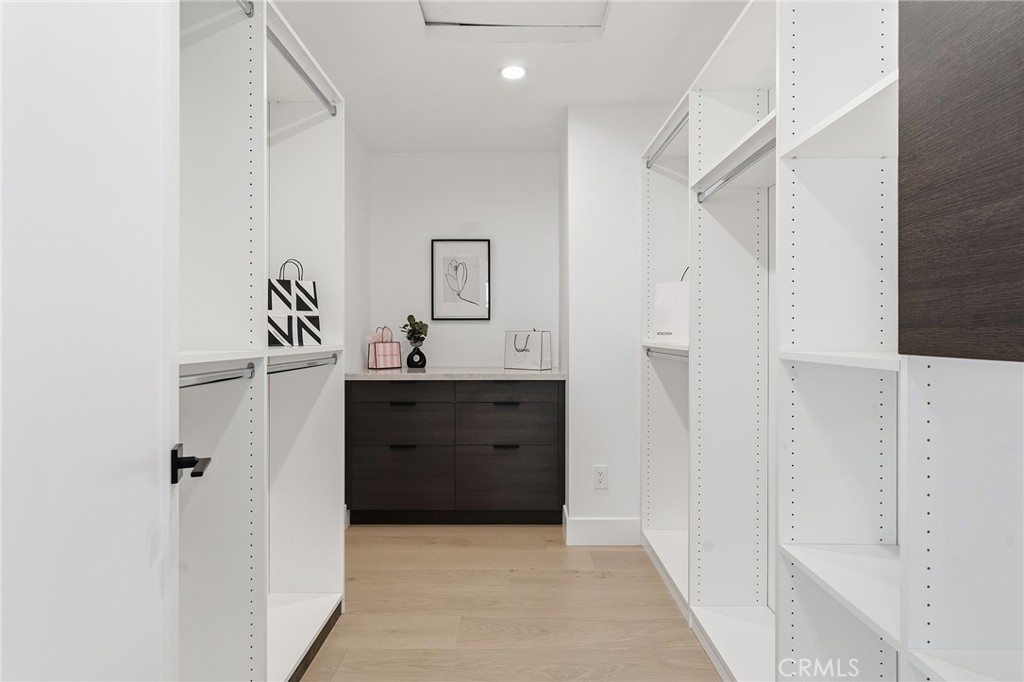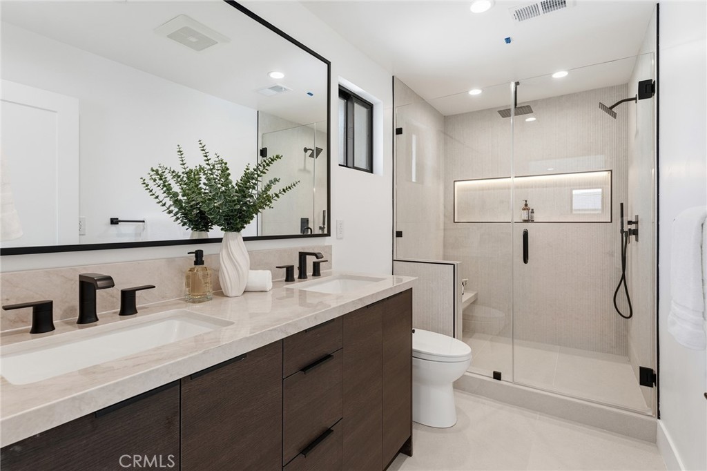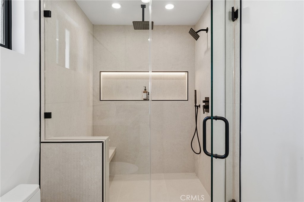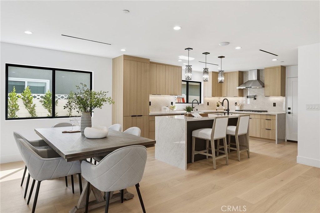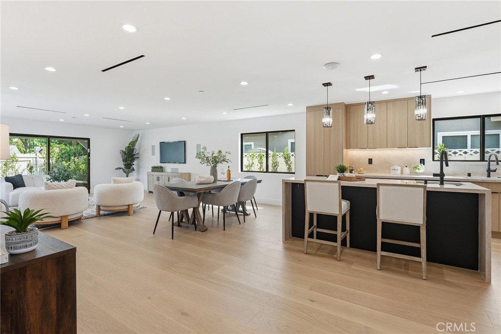 Gorgeous completely reimagined single story smart home desirably located adjacent to Walnut Acres. The expanded property truly feels like new construction as it was completely remodeled to the studs and boasts newly built pool, spa, and 220 SF covered patio. The front yard features large grass lawn, paver stone driveway that leads to the 2-car attached garage, and long covered front porch for added privacy. Step inside to find a completely open floor plan drenched in natural light featuring wide plank oak wood flooring throughout. The stunning kitchen features center island with second prep sink and breakfast bar seating, custom soft close cabinetry, Taj Mahal quartz waterfall counters, pantry space, and stainless smart appliances including double ovens and 5-burner stove with pot filler. The kitchen opens directly to both the dining area and spacious living room with built-in surround sound system and glass slider that opens to the yard. A guest powder bathroom is conveniently located off the entry near the living spaces. The primary suite is positioned perfectly to overlook the backyard and features large walk-in closet with custom built-ins and luxurious en-suite bathroom with dual sinks, designer tiling, and walk-in shower. There are three additional well appointed bedrooms, each with mirrored closets with custom organizers. One secondary bedroom has en-suite bathroom with walk-in shower. A large hall bathroom with tub and shower services the other two secondary bedrooms. There is direct access to the finished 2-car garage with epoxy flooring, recessed lighting, and built-in storage cabinets. The entertainer’s backyard is highlighted by a newly built heated pool & spa with wraparound lounge decking, 220 SF covered patio great for outdoor dining, synthetic lawn for play, and newly planted ficus plants + several fruit trees. Additional upgrades per seller: all new HVAC/linear venting, new 200 AMP electrical panel, new roof, new tankless water heater, all new plumbing, new Milgard windows, new exterior drainage, fire sprinklers, and smart home tech including camera system, alarm system, built-in Wi-Fi extenders, and Ring. Adjacent to Westfield Mall/Village, Calabasas Commons, Warner Center with the new Rams Village in development, local parks/hiking trails, & zoned for award-winning El Camino & Hale charter schools.