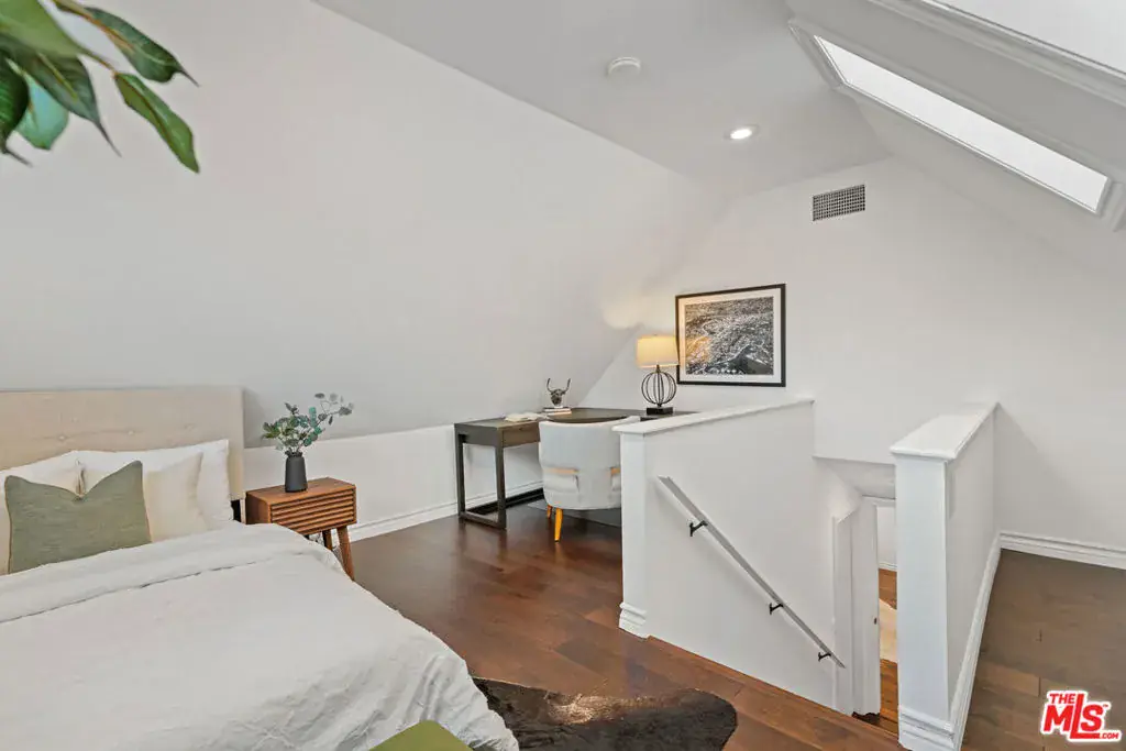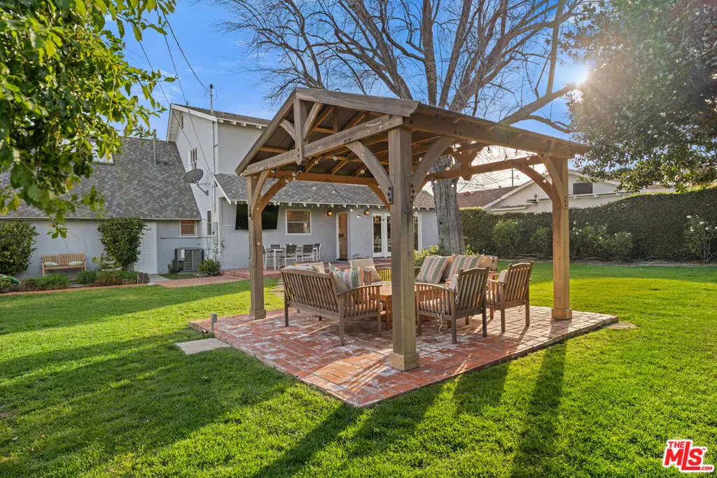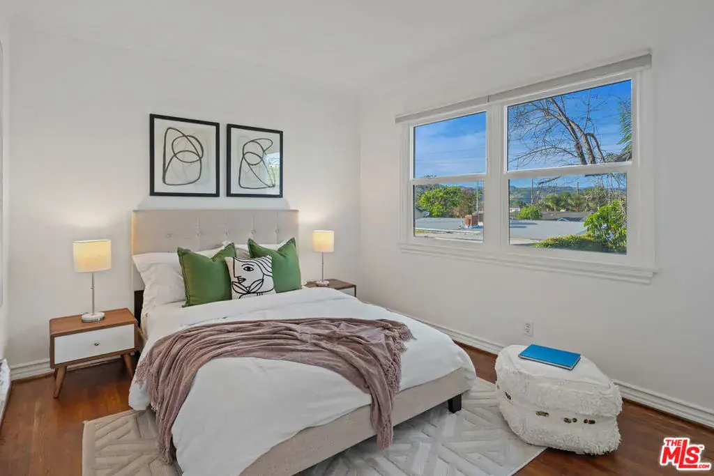 Storybook two-story on a beautiful cul-de-sac in prime Woodland Hills. Spacious and thoughtfully updated throughout, featuring an open chef’s kitchen with expansive countertops, breakfast bar, double ovens, stainless appliances, abundant cabinetry, and natural light. Distressed hardwood floors, fireplace, and French doors enhance the flexible living and dining spaces. Oversized primary suite with walk-in closet and updated bath access. Secondary bedroom with adjoining alcove ideal for office/study. Third bedroom with yard views. Fourth bedroom/den with direct bath access. Separate upstairs bonus family room/office (optional 5th bedroom without closet) offers exceptional flexibility.Large, flat, fenced backyard with mature landscaping, brick patios, pergola, tangelo tree, and outdoor TV perfect for entertaining. Walking distance to El Camino & Hale. Minutes to Warner Center and The Commons. *Upgrades: CertainTeed Presidential Shake roof (2023), new electrical panel (2022), Noritz tankless water heater (2025), new upstairs flooring (2022), guest bedroom windows (2022), ceilings removed/repainted (2022/2026), front & backyard redesign (2023), EV charger (2023), Nest thermostat (2025), Samsung washer/dryer (2023), Graber cordless blinds (2023).