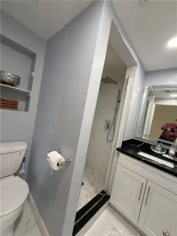 Chef’s Kitchen: Sleek quartz countertops, custom cabinetry, and a full suite of brand-new appliances (Fridge, Stove, Microwave).