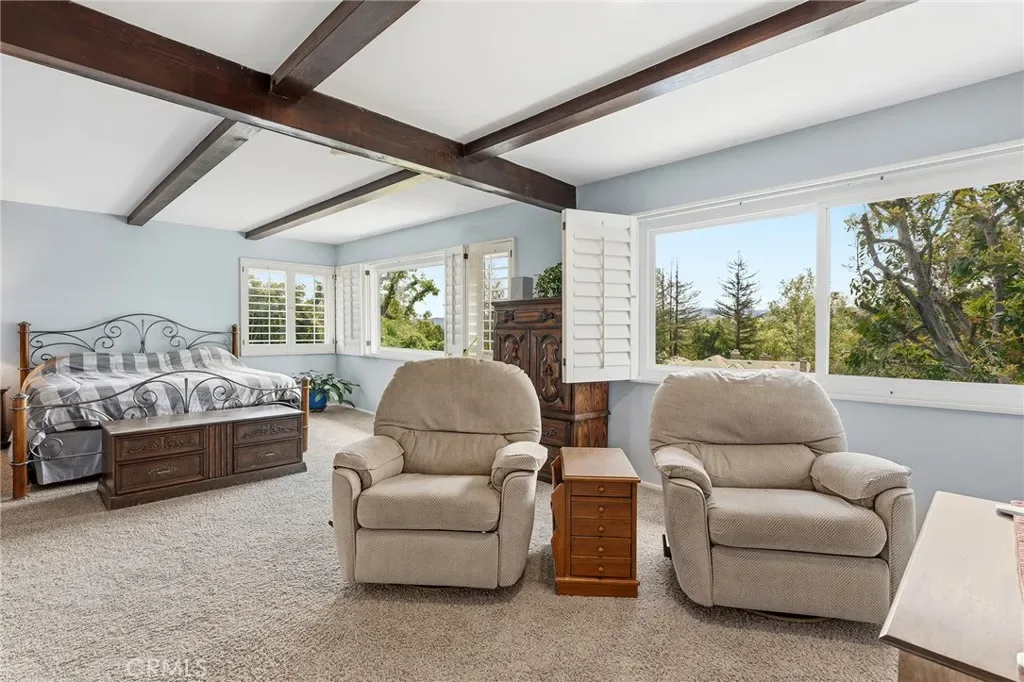 Meticulous Valley Circle Estates pool home boasting both Valley & mountain views while also overlooking the scenic vistas of Hidden Hills! On the market for the first time in over 35 years, the home is located West of Valley Circle and perched on a desirable double-sided view lot. The front yard has manicured rolling grass lawn with mature landscaping, wide driveway that leads to the 3-car attached garage with direct access, and covered front porch that leads to the double door entry. Formal entry foyer with coat closet leads directly to the spacious living room highlighted by floor-to-ceiling stone fireplace, soaring wood beamed pitched ceiling, picture windows that bask the space in natural light, & separate seating area with glass slider that opens to the yard with views beyond. The formal dining room features a dual-sided wet bar with serving counter and sink and a glass slider that opens to the covered patio. Upgraded kitchen has granite counters, real wood cabinetry, stainless appliances, 5-burner cooktop, double ovens, warming drawer, separate buffet counter with storage, pantry space, and glass slider that opens to the yard. A first floor guest bedroom/office has walk-in closet and access to full bathroom with tub & shower that also serves as convenient guest powder bath. Upstairs you will find the oversized primary suite boasting wall-to-wall picture windows that overlook incredible scenic mountain and nature views, sitting room, gorgeous wood beamed ceiling, two large walk-in closet/wardrobe areas, and expansive en-suite bathroom with dual vanities, separate makeup counter, bath tub, walk-in shower, and toilet room. Two additional secondary bedrooms are each well appointed with large closets, with one featuring city light views. A hall bath has dual sinks and bath tub/shower. A sizable laundry room has sink, built-in storage cabinetry, and direct access to the 3-car garage. The entertainer’s backyard is a true sanctuary set behind a backdrop of dazzling Hidden Hills tree-lined scenic vistas and features remodeled swimming pool & spa, covered trellis, large patio ideal for dining alfresco, two grass areas with mature trees, and a sprawling landscaped lower level that provides potential for further development. Adjacent to Westfield Mall/Village, Calabasas Commons, Warner Center with the new Rams Village in development, local parks/hiking trails, & zoned for award-winning El Camino & Hale charter schools.