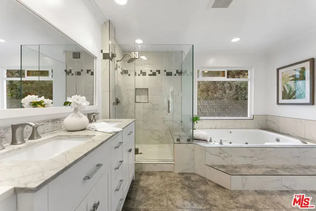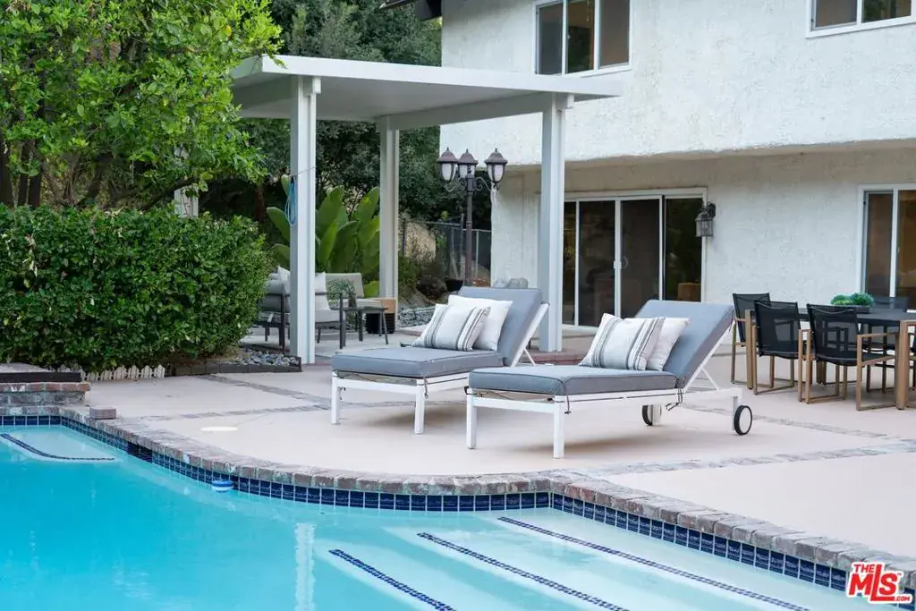 Escape to your private paradise! Tucked on a serene Woodland Crest cul-de-sac, this stunning 5-bed, 4-bath pool home sits on over half an acre! 3,256 sq ft of luxury on a sprawling 26,042 sq ft lot, nature visible from every window! Slide open the doors to California dream living: a resort-style backyard with sparkling recently refinished pool, chic gazebo, and a bar that opens straight into the gourmet kitchen, your epic housewarming bash starts here! Also a side yard perfect for a children’s play area or work-out area. Inside, sleek wood laminate & Italian tile floors, Jenn-Air appliances, and designer lighting. Not one but two primary suites, one with it’s own sitting room, a cozy fireplace, private balcony, and custom walk-in closet. Eco-smart? Paid-off 2022 solar panels! Dive into the freshly re-plastered, retiled pool under the new gazebo perfect for al fresco feasts. Plus, brand-new DUAL SYSTEM 2020 central AC/heat. Just minutes from The Village, Malibu’s iconic beaches, top-rated Woodland Hills Elementary and the new Rams Village at Woodland Hills, the most exciting high profile 52-acre sports headquarters and mixed-use development on the horizon which will have a positive ripple value affect across the San Fernando Valley positioning Woodland Hills as a long position growth market. Now is the time for this incredible private oasis in the exclusive Woodland Crest community of Woodland Hills!