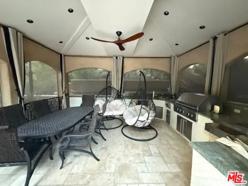 Built in 2008, this single-story gated Mediterranean Villa is an architectural masterpiece that combines privacy, prestige, and unmatched craftsmanship. A dramatic entry with soaring ceilings, imported marble with onyx inlay, and 24″ Italian limestone floors sets the tone for the open, elegant floor plan. Designed for grand entertaining, Milgard French doors create seamless indoor-outdoor living, opening to travertine-tiled patios, a PebbleTec pool with Bellagio-inspired mosaic stone coping, an elevated spa, and a cascading waterfall with jet sprays. The outdoor kitchen and loggia are fully equipped with granite counters, Viking grill, warming drawer, and refrigeratorperfect for California living at its finest. The chef’s kitchen features custom solid hardwood and beveled glass cabinetry, a large granite island, and professional-grade Miele and Thermador appliances. The primary suite offers a luxurious retreat with a spa-like bathroom and oversized walk-in closet. Spacious secondary bedrooms each feature lavish en suite baths. Additional highlights include a grand living room, formal living room with full bar, elegant dining room, premium interior and exterior lighting, and fully owned solar. Every detail of this trophy estate reflects uncompromising quality and timeless design. Buyer’s agent and buyer are advised to perform their own due diligence on all information provided in this listing. Seller and seller’s agent make no guarantees and shall not be held responsible for any inaccuracies.