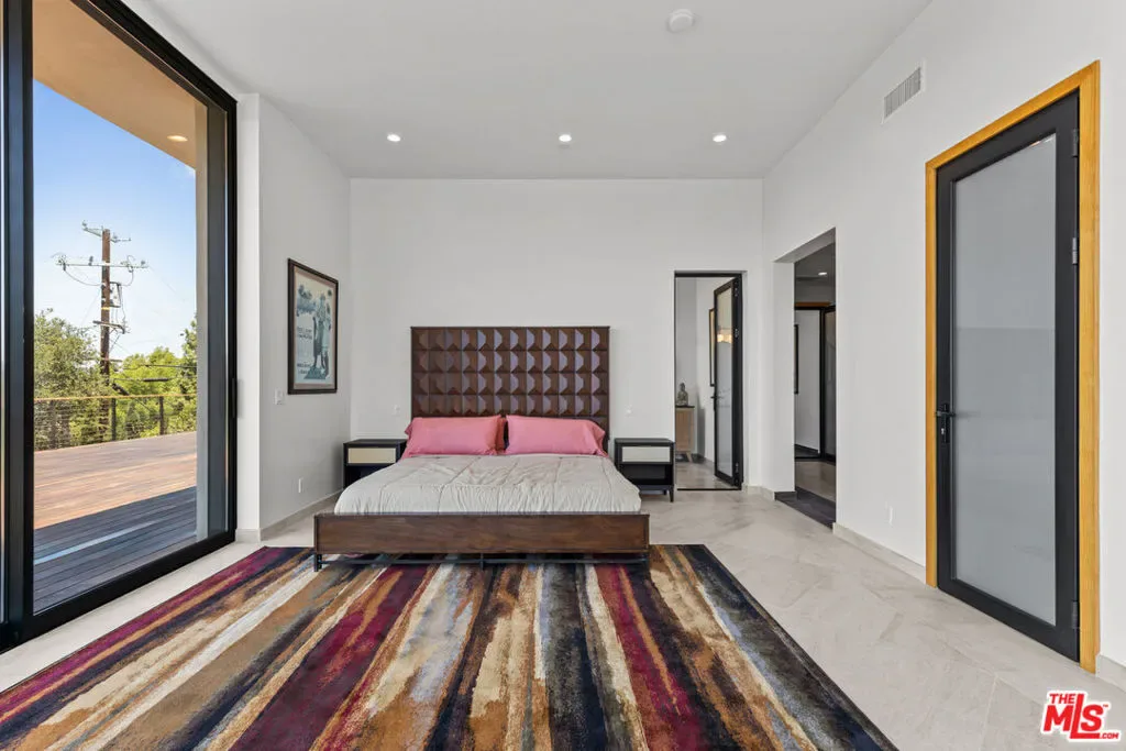 Welcome to Skyhaven, a newly constructed architectural masterpiece completed in 2025 that seamlessly blends midcentury modern luxury with breathtaking Woodland Hills golf course vistas and city skyline views. Perched on an almost 13,000 sq. ft. lot, this 4,027 sq. ft. home is designed for both elegance and functionality, featuring four bedrooms plus bonus room, five and a half bathrooms, and an expansive 2,000 sq. ft. of outdoor deck space. The infinity pool with a Baja shelf and outdoor shower creates a serene retreat, while the yoga studio and gym, with floor-to-ceiling glass, offer a stunning vantage point of the surrounding landscape. The imported Italian Arclinea kitchen is a chef’s dream, equipped with Wolf and Sub-Zero appliances, a coffee and espresso station, and exquisite countertops of directly imported Italian marble. Arclinea is globally renowned for its cutting-edge design and craftsmanship, seamlessly blending high performance with refined Italian aesthetics. Interior finishes exude sophistication with Italian travertine in a Versailles pattern gracing the kitchen, upstairs hall, and upstairs bedroom floors. The primary suite showcases rare, French 1/2″ limestone, lending a timeless European elegance to the space. Bathrooms feature Italian Terrazzo-style tile flooring, adding a touch of refined luxury. Designed for seamless indoor-outdoor living, the home features 10.5-foot fully openable pocket glass doors, inviting in the stunning natural light and panoramic vistas from sunrise to sunset. Thoughtfully engineered for comfort and efficiency, the residence features interior and exterior insulation for temperature stability and noise reduction and pre-wiring for smart home integration to elevate the living experience. The landscaping is a meticulously designed Xeriscape with a midcentury modern vibe, created to thrive in Southern California’s climate. This lush, colorful desert oasis blends drought-tolerant plants from around the globe, selected for their striking shapes and contrasting textures, resulting in a low-maintenance, water-wise landscape that is both visually captivating and environmentally sustainable. The property also offers an unmatched 5-car parking capacity, including a garage, driveway, and dedicated RV space. From the lush green fairways of Woodland Hills Golf Course to the twinkling lights of Warner Center, the views are nothing short of mesmerizing. Every detail, from the handcrafted red balau hardwood deck to the Italian light fixtures, has been meticulously curated to create a residence that is both visually stunning and effortlessly functional. Experience the pinnacle of modern luxury in this one-of-a-kind contemporary retreat. 4671 Bedel is within close proximity to local parks, shopping, dining, and top-rated schools, offering the perfect combination of convenience and tranquility. This is the perfect property to enjoy all of the amenities Woodland Hills has to offer!