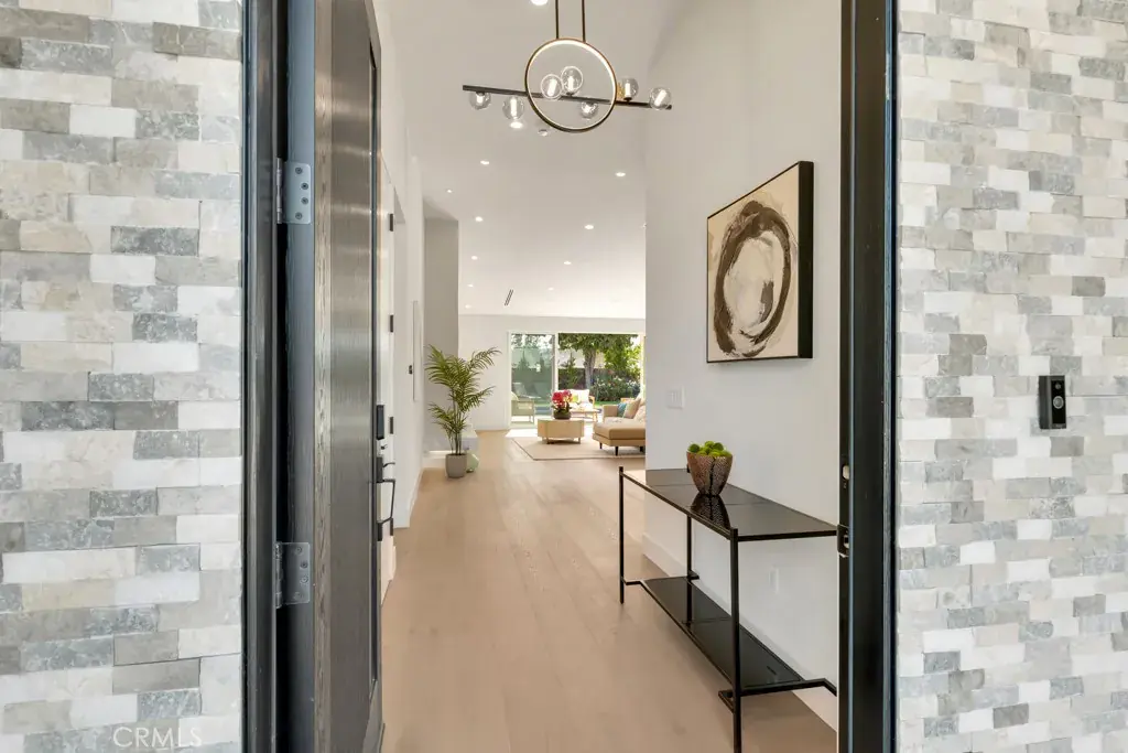 Welcome to this stunningly reimagined contemporary 3 UNITS ON 1 LOT residence that blends high-end finishes with effortless functionality, nestled in a serene neighborhood surrounded by mature trees and lush landscaping. This primarily single-story masterpiece delivers luxury living across every square foot, thoughtfully crafted with exceptional attention to detail. This fully remodeled home features over 4400 total square feet of generous living space, with 6 bedrooms and 8 bathrooms, including a 1 bed 1 bath detached ADU with a separate address. There is an attached guest quarters with a separate entrance. It features a kitchenette, living room, walk-in closet, large bedroom with balcony, and a large bathroom with tub and shower with dual vanity. The heart of the home boasts a striking open-concept gourmet kitchen featuring custom flat-panel cabinetry, professional-grade Thermador stainless steel appliances, dual built-in ovens, and a 60-inch refrigerator/freezer. The oversized waterfall island with quartz countertops, sleek pendant lighting, and high-end stainless-steel sink becomes the centerpiece for entertainment and family gatherings. A seamless flow from the kitchen into the spacious great room and dining area, all bathed in natural light from the oversized sliding glass doors. High ceilings with recessed LED lighting enhance the airy ambiance, while wide-plank white oak hardwood flooring adds warmth and elegance throughout. Minimalist fixtures, matte finishes, with an addition of smart-home living, and custom wood cabinetry throughout blend modern sophistication with subtle luxury. A built-in media wall with surround sound speaker systems anchors the living area, offering both functionality and aesthetic appeal. Step outside to your private resort-style backyard, where lush artificial turf and clean-lined concrete pavers create a polished, low-maintenance landscape. The sparkling pool and integrated spa offer a perfect place to unwind or entertain, complemented by a custom patio lounge area ideal for al fresco dining and summer evenings under the stars. Large sliding doors connect the indoor and outdoor spaces, creating a true California indoor-outdoor living experience. Now out to the front of the home we have a modern façade that is framed by elegant stonework, clean lines, and a dramatic entryway with LED step lighting leading to a bold front door. Elevated privacy walls and fresh landscaping give this home a secluded feeling.