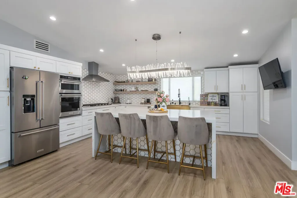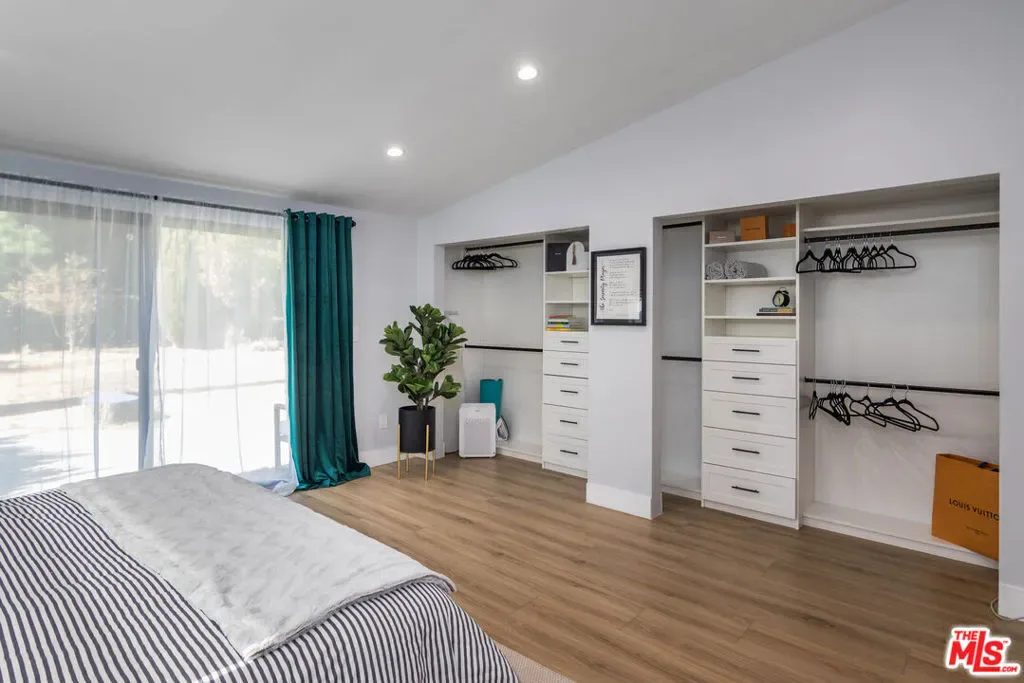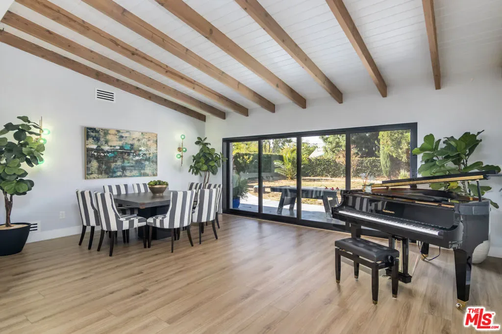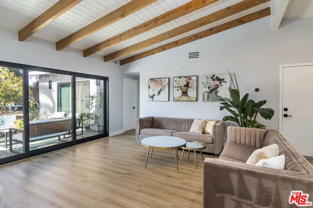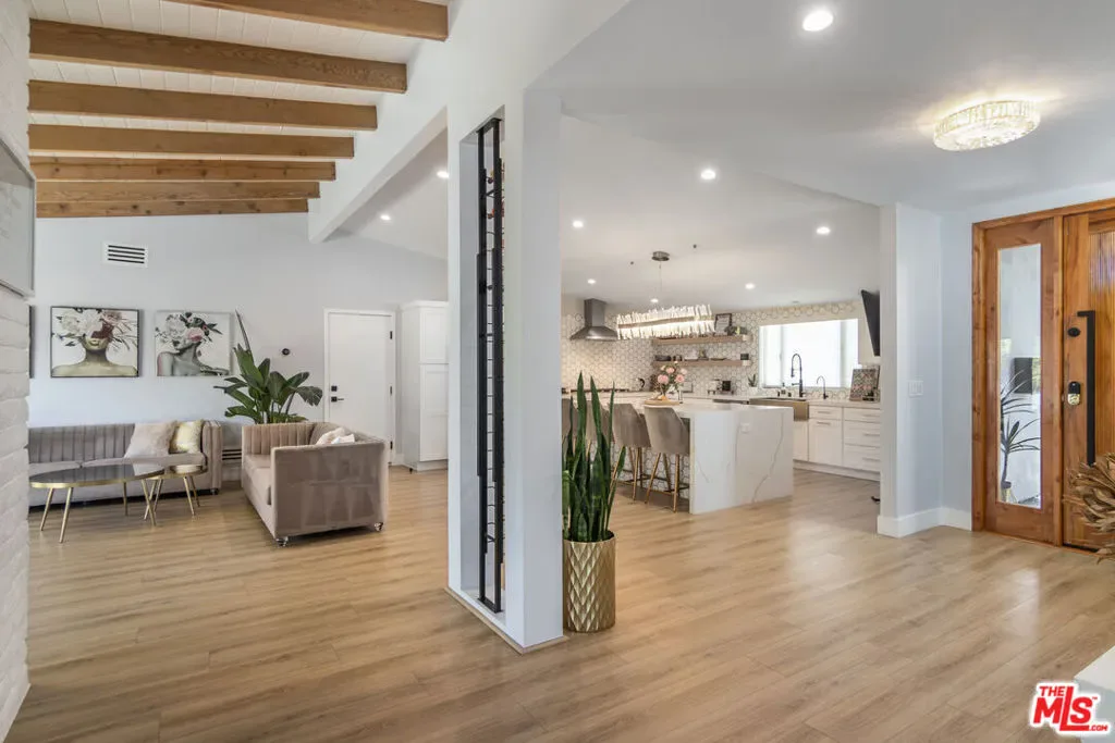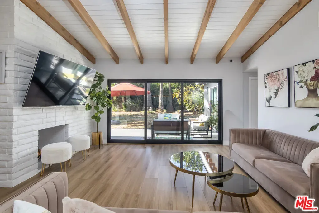 Remodeled FULLY FURNISHED Charles Du Bois in Woodland West mid century modern home on Heaven Ave! Great open floor plan with spacious living and family room divided by a double sided fireplace (decorative)! Beautiful fully equipped gourmet kitchen with 8×5 island perfect for any cook! Relaxing primary bedroom retreat with sliders that open up to massive backyard. High vaulted wood beamed ceilings! Circular driveway with EV charger! Wall of sliding doors that open up wall to wall leading to an amazing entertainers yard with lush grass area and HUGE patio! Perfect location, adjacent to Calabasas just minutes from The Calabasas Commons, Farmers Market, Starbucks, Bristol Farms, many hiking trails, easy access to Malibu State beaches! Award winning schools and much more!!! Available for short-term and up to 12 months rental, any other longer terms are negotiable. Monthly Rate includes gardener. There is a 4th bedroom (2nd Master Retreat on the opposite side of the house) that might also be available for rent at additional cost. AVAILABLE APRIL 2026.