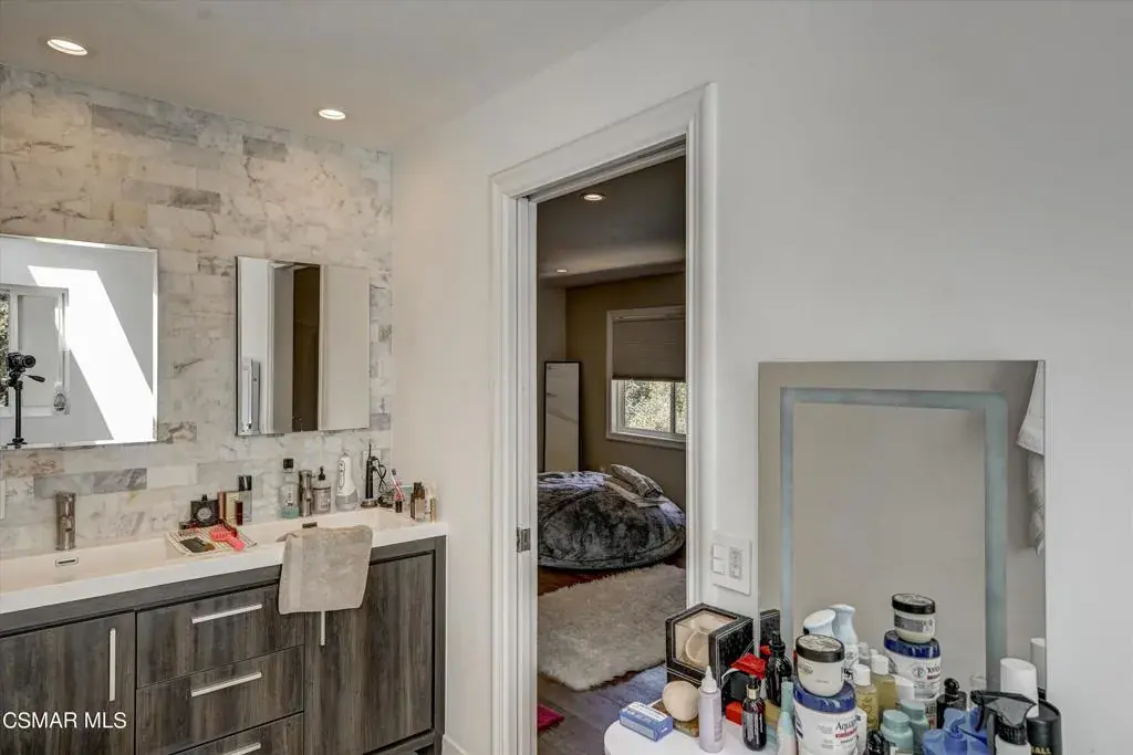 Location, location, location. Offered for Lease $10.990 a month. 4833 Dunman, the home is located south of Boulevards, within the award-winning El-Camino & Calabasas School District. Home features, Quiet Street, no sound of the Blvd. Almost no electricity bill because of solar newly installed, Newer AC installed. The 2-car garage is equipped with Newer EV (220 V) electric car charger. Security systems and cameras are installed around the entire home managed by Vivint. Entering from front of this modern grand-looking home, as you enter the main door, wood- flooring greets you with one of the two En-Suite bedrooms, built in a modern luxury full bath, with a double-door entry impacting you with a grand feel. You can furnish it per your desire. As you continue through the hallway passing the luxury powder room and decorated under-stair custom wall with shelves, you come to the living room and dining area. The open concept and large picture windows overlooking the pool and view creates. a true indoor/outdoor feel from the comfort of your home. Upstairs you will find Primary En-Suite with two more walk-in closets. It is fully furnished with a bed, wall mounted TV. The primary bedroom features a bathroom with double vanity and a built-in make-up area and plenty of sun-roof-light. The primary bedroom also features an oversized Walkin closet. Other two bedrooms you can furnish per your desire. The amazing fully upgraded back yard has an upgraded heated Pool & Spa with a large Deck, good size grass area and a side yard with basket-ball hoop. This is a perfect home to live in and enjoy your life.
