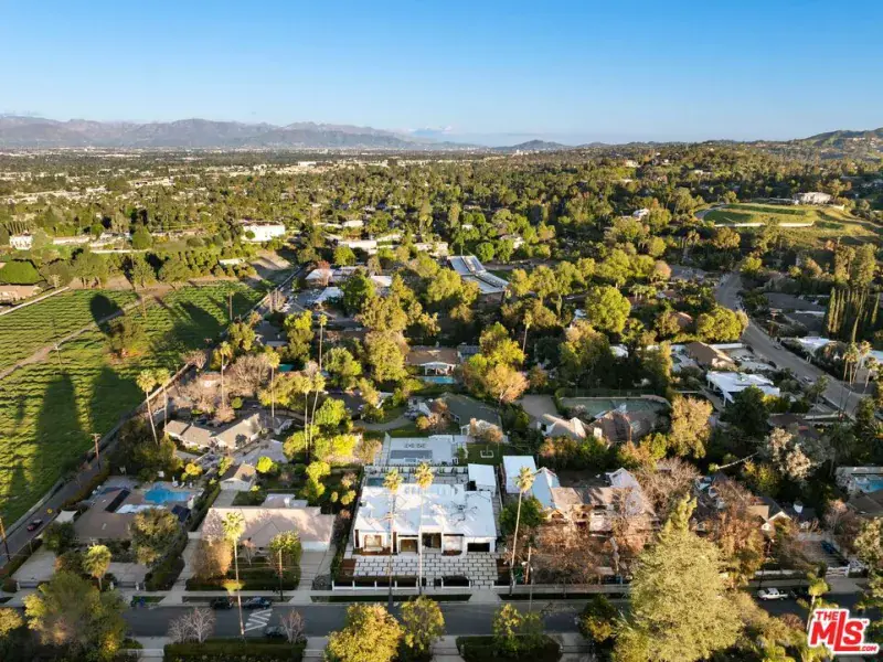 Presenting a rare and exceptional newly constructed single-story architectural residence, thoughtfully designed to deliver refined modern living and seamless indoor-outdoor sophistication in one of Woodland Hills’ most coveted settings. Set on a flat 17,847sqft lot, this striking estate offers contemporary elegance, exceptional craftsmanship, and an effortless lifestyle tailored for both everyday comfort and elevated entertaining. A dramatic entry leads into an expansive open concept interior where living, dining, and culinary spaces flow beautifully together, enhanced by sliding pocketing doors that open to a generous covered patio. The chef’s kitchen is appointed with top of the line appliances, custom cabinetry, and an oversized island, complemented by a fully equipped butler’s kitchen for discreet prep and service. A temperature controlled wine cellar sits alongside the dining area, serving as both a functional element and architectural statement. The residence features 6 bedrooms and 6.5 bathrooms, with each bedroom offering its own en-suite bath for privacy and comfort. A dedicated private office and a state of the art home theater provide refined spaces for work and leisure. The primary suite is a serene retreat overlooking the backyard oasis, with direct views of the pool and spa, a spa inspired bathroom, and expansive his and her walk-in closets. Finishes have been carefully curated, showcasing natural stone surfaces, wide plank hardwood flooring, quartzite slabs, custom tilework, and designer lighting, reflecting superior quality and timeless taste throughout. Outdoors, a resort style sanctuary awaits, featuring a sparkling pool and spa, expansive lounge and dining areas, and a built-in BBQ bar ideal for relaxed afternoons or sophisticated evening gatherings. A detached guest house completes the property, offering flexible space for visitors, extended family, or a private studio. A newly constructed single-story estate of this caliber, design, and setting is exceptionally rare in Woodland Hills. This is modern luxury living at its finest.