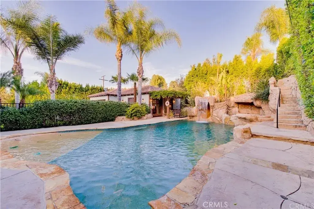 This stunning custom-built estate, situated on a prominent corner lot south of Ventura Boulevard, is being offered for the first time. Designed for comfort, style, and entertaining, the residence features 5 bedrooms, 5.5 baths, a private gym, a detached guest house, and approximately 5,567 square feet of living space on a beautifully landscaped 16,945-square-foot lot.