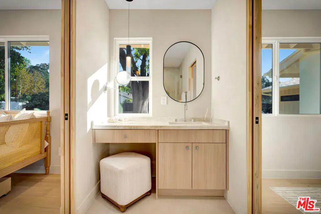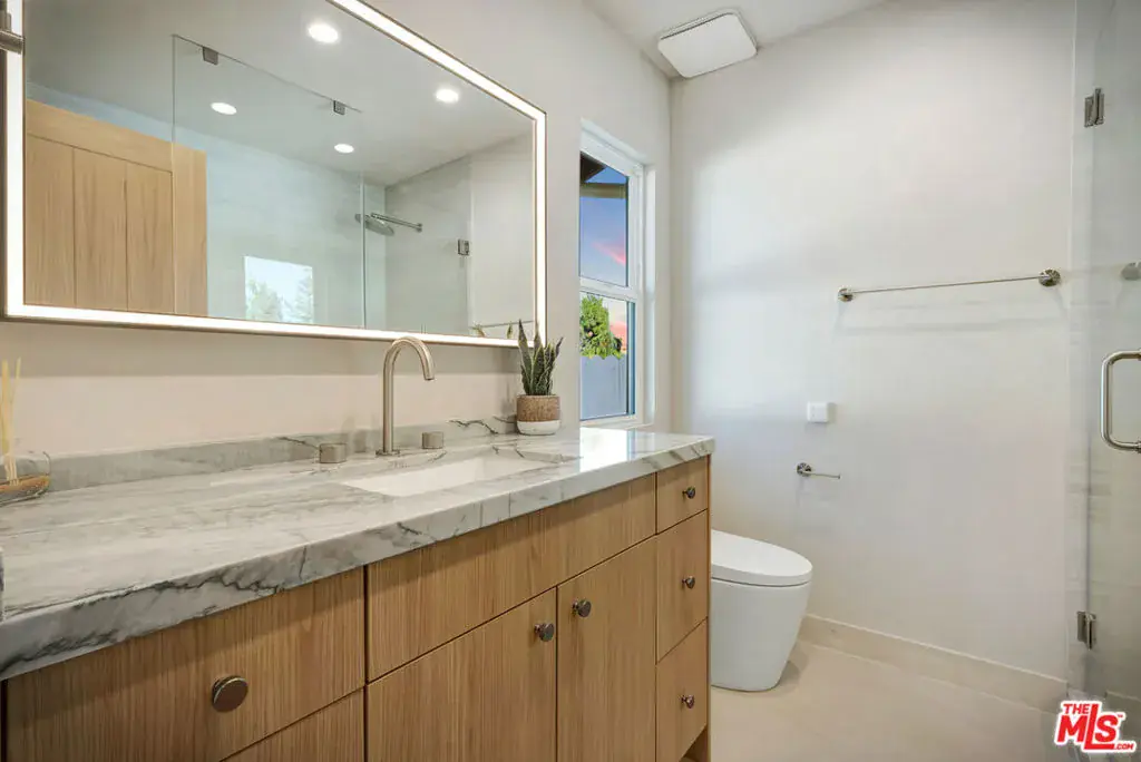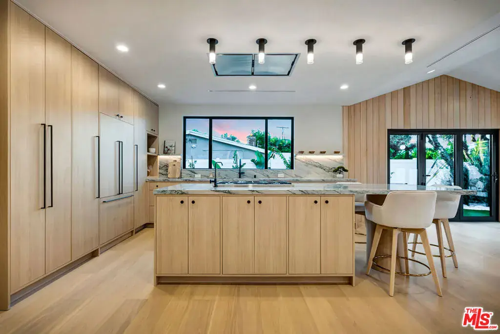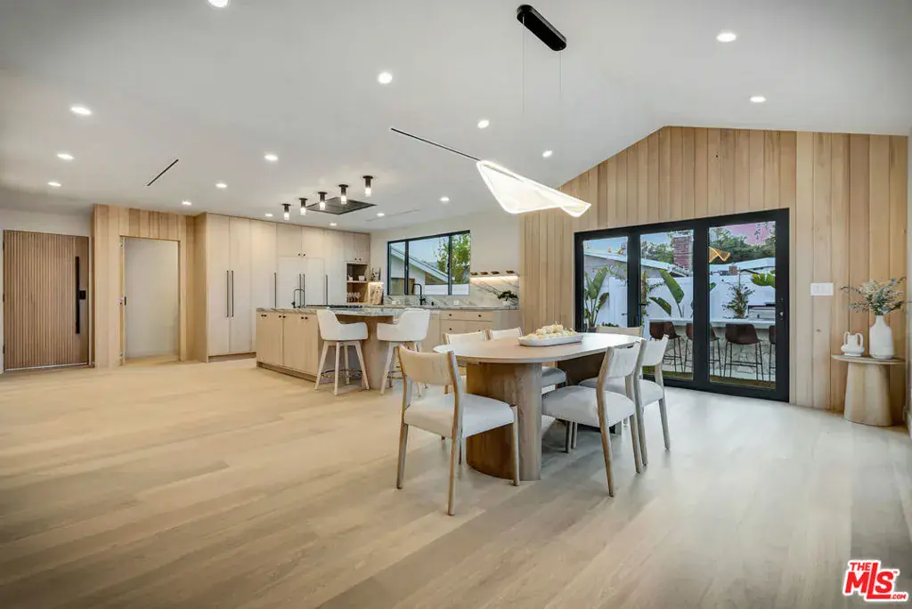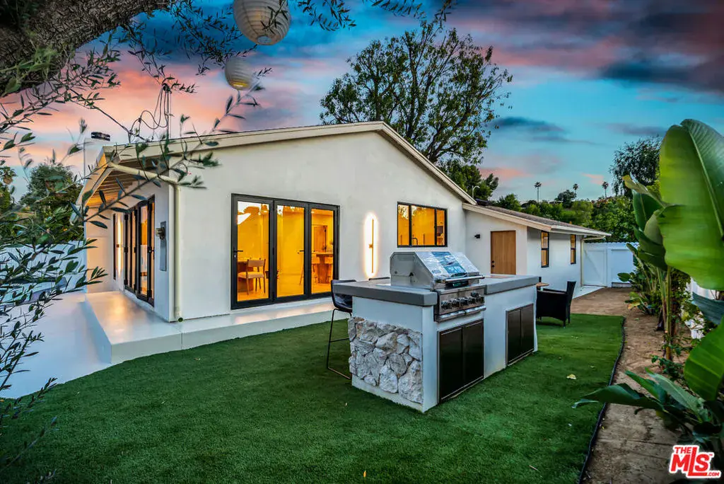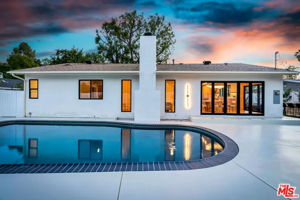 Rebuilt and reimagined from the studs, this stunning 4-bedroom, 3.5-bath residence exemplifies modern sophistication, superior craftsmanship, and timeless design. Every detail has been thoughtfully curated to create a seamless blend of luxury and functionality. The open-concept floor plan is filled with natural light and highlighted by smooth plaster walls and vaulted ceilings.The spacious living room features a striking wood paneled feature wall and custom fireplace that adds depth and sophistication. Perfect for both everyday living and entertaining, the seamless flow connects the living, dining, and kitchen areas effortlessly. The gourmet kitchen is a true centerpiece, featuring high-end appliances, designer fixtures, and a large center island. Sliding glass doors lead to a beautifully landscaped backyard retreat, complete with sparking pool, custom-built BBQ, firepit, and integrated sound system. Nearly every element of the home has been upgraded, including brand-new electrical, plumbing and HVAC systems and more. Other amenities include two primary bedrooms, a stunning powder room and a dedicated laundry room. Located close to premier shopping, dining, and entertainment this exceptional property offers the perfect combination of luxury, comfort, and convenience a rare opportunity to experience refined Woodland Hills living at its finest.