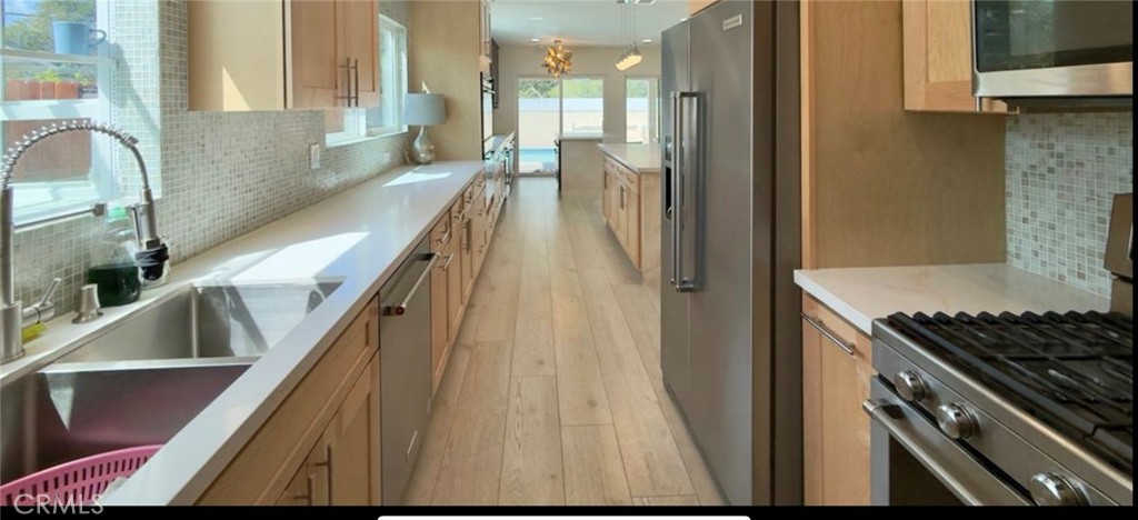Welcome to this stunning home with permitted attached Junior ADU. Home features a very spacious living room, perfect for relaxing or entertaining. The completely remodeled kitchen is a chef’s paradise, showcasing two large islands, a sleek bar area, and top of the line finishes throughout. Every bathroom has been thoughtfully upgraded with modern touches, offering comfort and style. Stackable washer-dryer located inside for your convenience. Step outside to a beautiful patio space complete with a refreshing swimming pool and a convenient outdoor shower perfect for rinsing off after a swim or enjoying a breezy open-air experience. The backyard also features a beautiful built-in BBQ area perfect for entertaining. The home offers a permitted attached junior ADU for potential rental income, or alternatively you can use the premises as a 3-bedroom and 3-bath home for your convenience. The property also offers a two-car attached garage with a private gated driveway. This home centrally located and offers easy access to shops, dining, and major freeways, making daily life so comfortable. Don’t miss the opportunity to own this one-of-a-kind property where luxury meets lifestyle!