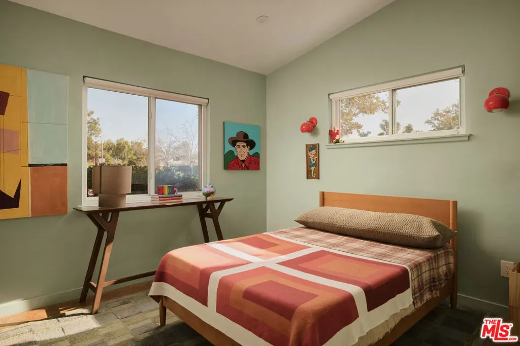 A striking mid-century modern by renowned architect Charles Du Bois, this thoughtfully redesigned Woodland Hills residence blends iconic architecture with contemporary comfort. Set on an expansive 12,126 square foot corner lot, the home offers 2,115 square feet of light-filled living space with clean lines, vaulted ceilings, and an effortless indoor-outdoor flow.Featuring four spacious bedrooms and two and a half beautifully updated baths, the floor plan is ideal for both everyday living and entertaining. The living rooms open to the backyard and sparkling pool, while the beautifully updated kitchen adds modern functionality within; the stunning double-sided fireplace serves as a dramatic focal point bridging indoor and outdoor realms perfect for lounging, dining, and play. Nearly every major element has been modernized while preserving the original character, giving buyers the rare opportunity to own an architecturally significant home with a pool that feels fresh, functional, and move-in ready in a prime Woodland Hills location.