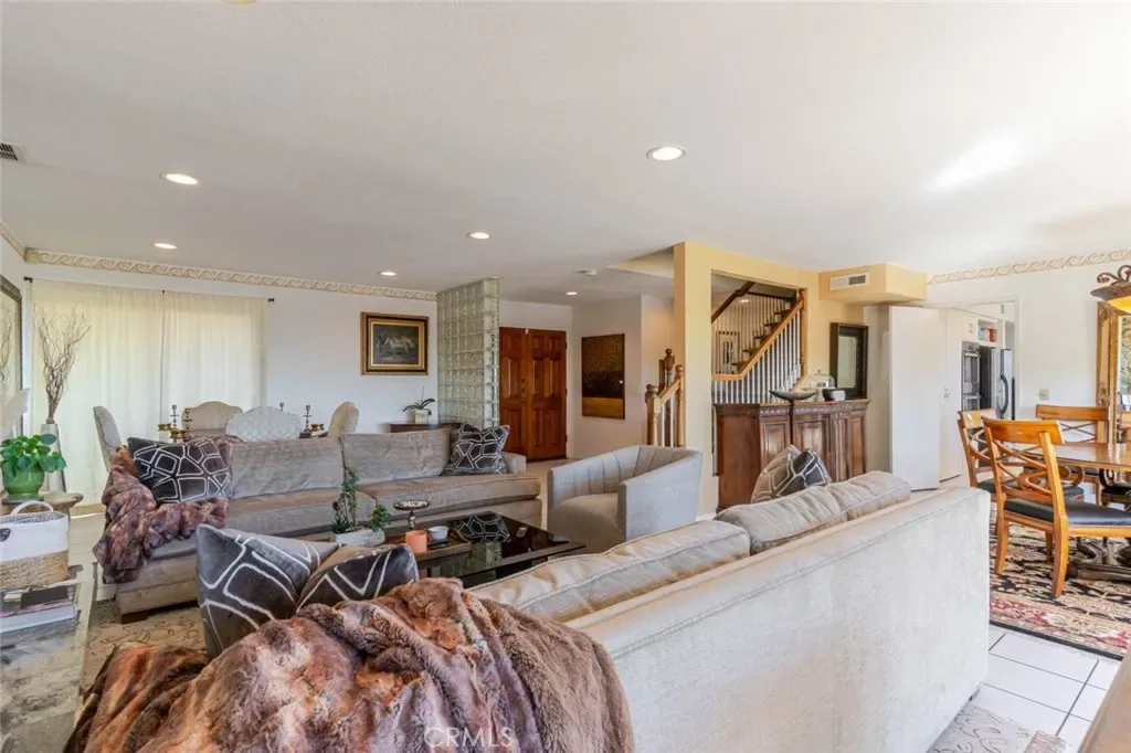 Inside, the home retains its original character while providing a functional and inviting layout. Enjoy multiple living spaces including a formal living room, a cozy family room with fireplace, and sliding glass doors that seamlessly connect the interior to the outdoor retreat. The kitchen, dining area, and family room all showcase captivating city views, creating an inspiring backdrop for everyday living.