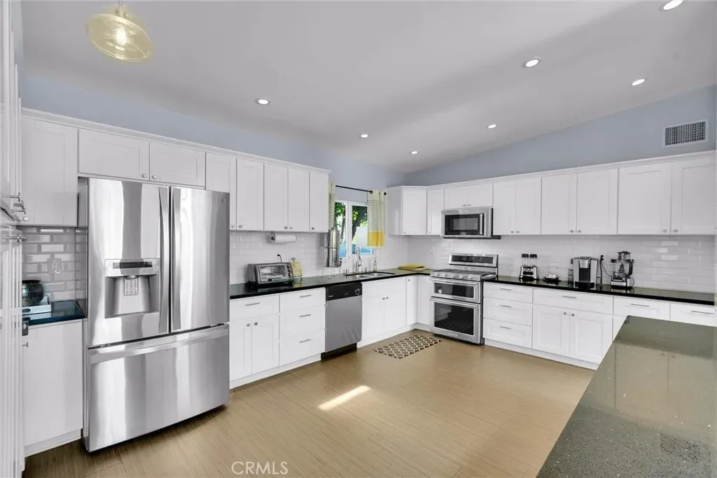 • Fully renovated Kitchen, Dining and Living rooms have high ceilings & “high hats” lighting. Kitchen has beautiful quartz crystal counter tops.