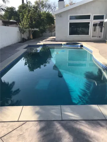 • New pool decking, patios, and front walkway are an attractive stamped concrete that looks like inlaid rock.