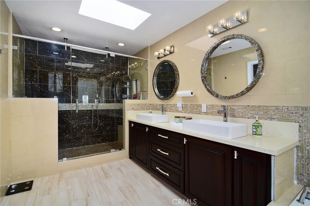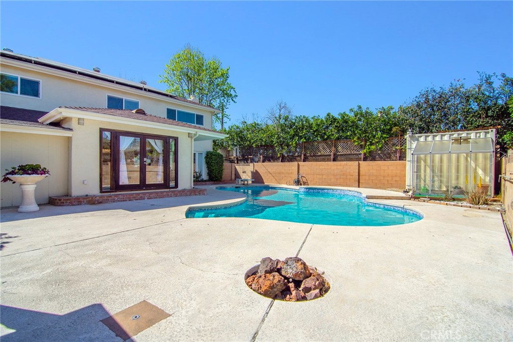 Beautiful Woodland Hills corner lot that’s been tastefully updated and offers an abundance of space, including a fully permitted ADU! A large entry welcomes you just before you make your way to the formal living room, complete with gas fireplace, patio slider and open views of every room downstairs. A huge open floor plan where the kitchen is the focal point. An enormous space all together, with loads of cabinet and counter space, an 8 foot wide center island, Quartz countertops, soft close drawers, under cabinet lighting & high end stainless appliances. The dining room is in an ideal location directly off the kitchen, with enough room for a 10 foot long dining room table, perfect for entertaining large gatherings of friends and family. From here, open views of the adjacent family room prevail. Again, plenty of room for the whole family while also offering rich wood french doors that grant you access to your private oasis outside. There is a dedicated laundry room with utility sink directly off the kitchen, as well as a half bathroom off the entry. Make your way upstairs and prepare to be delighted. The primary suite has more than enough space for a king size bed and accompanying furniture, while also offering delightful views of the sparkling pool out back. In addition, the en-suite bathroom is spa-like, featuring double vanity sinks, a large soaking tub as well as an enormous walk-in shower with multiple shower heads. Finally, attached to the primary and sharing direct access is one of the guest bedrooms, perfect for every woman’s dream closet, a nursery or keep it as a guest bedroom. The final two bedrooms upstairs (4 total) continue the trend of having an abundance of space while being serviced by another luxurious bathroom, offering a wall to wall vanity with double sinks and a walk-in shower. After your tour is complete of the main house, take a stroll back out front to admire the fully permitted ADU. Once a garage, this nearly 500 sq. ft. 1 bedroom + 1 bathroom space offer a buyer countless possibilities while giving buyer’s a chance to earn immediate cash flow at $2,450/mo. Out back, enjoy a sparkling pool, fire pit, free standing pergola and an attached storage room directly off the kitchen. Additional upgrades include FULY PAID SOLAR, central heat & air in addition to mini splits for each room, EV charger, double pane windows, recessed LED lights & so much more.