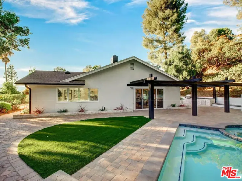 Nestled South of the Boulevard in the desirable Vista De Oro neighborhood of Woodland Hills, this exceptional single-level view residence sits atop a long private, secured and gated driveway. Offering total privacy, presence, hillside and city light views of the valley below. Light-filled interiors showcase an open-concept floor plan designed for luxury living and entertaining. The chef’s kitchen features Viking stainless steel appliances, custom cabinetry, laser cut quartz countertops, generous prep space. The custom kitchen flows seamlessly into the living and dining areas. Expansive updated windows and sliding doors open to outdoor decks, creating the perfect setting for sunset views and indoor-outdoor gatherings. Resort-style outdoor living highlights the property with a redesigned private pool and spa, custom lighting, multiple lounging areas, turf landscaping, and a separate side BBQ entertaining area, creating an ideal setting for entertaining and relaxation. The spacious primary suite offers a peaceful retreat with a spa-inspired bath and walk-in oversized custom closets, while additional well-appointed bedrooms provide comfort and flexibility for family or guests.Located within the highly regarded school district of Serrania Avenue Elementary, Woodland Hills Charter Academy, and Taft High School. Just minutes away from Ventura Boulevard, premier shopping, dining, and entertainment. A must see for this Vista De Oro residence offering privacy, views, and elevated hillside living in one of Woodland Hills’ most sought-after neighborhoods.