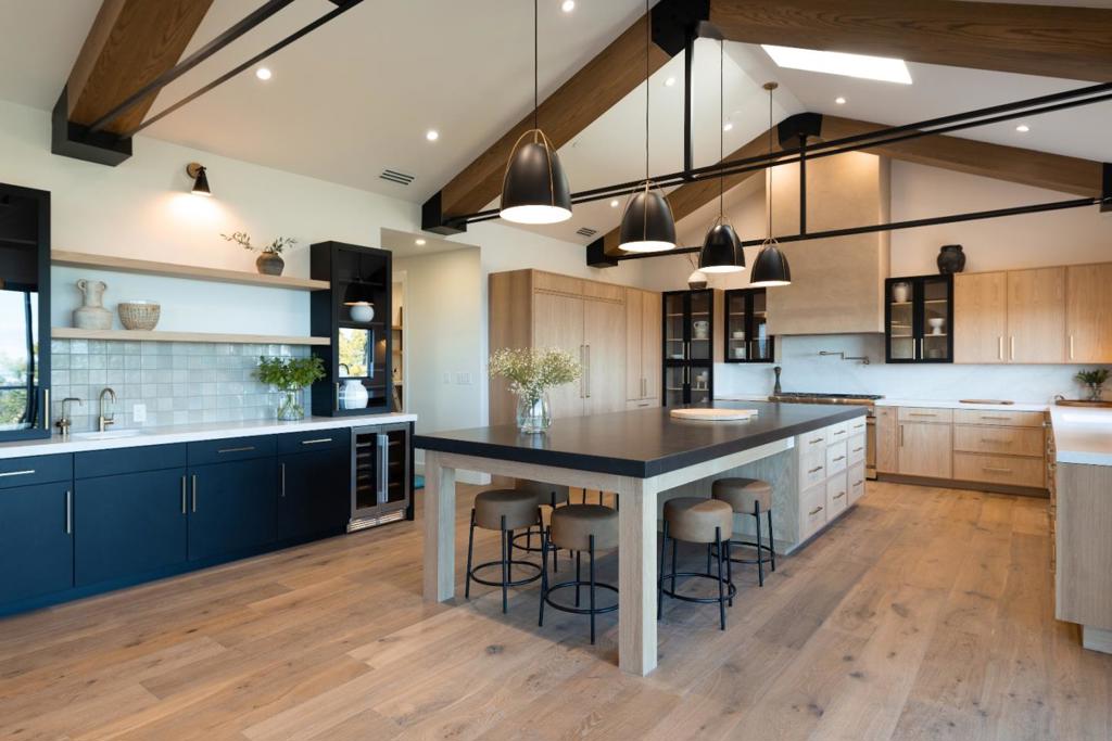 A rare opportunity to own an earthy modern estate set in the esteemed Woodside Hills with breathtaking sweeping Bay views. The residence was rebuilt with uncompromising attention to detail, offering a truly like-new experience that has never been lived in. Situated on 0.98 acres, the 6,809 sq ft home blends dramatic scale with warm, livable sophistication for true California Living. The thoughtfully designed floor plan includes 4 well-appointed bedrooms, 4 designer bathrooms, 1 powder room, dedicated office, flex studio, media room, laundry/mud room, and luxurious rec room. The designer kitchen serves as both a functional showpiece and an entertainers dream, featuring open steel & beam vaulted ceiling, natural light, custom white oak cabinetry, top-of-the-line appliances, wet bar, pantry, temperature controlled wine cellar, and designer finishes. The grounds include a stunning chefs kitchen, fire pit lounge, abundance of areas to entertain, view decks, and a refreshing pool. Surrounded by other distinguished estates, 150 Brookwood Rd is an iconic offering, combining design-forward architecture, extraordinary views, exceptional outdoor living, and an unparalleled Woodside setting to create a one-of-a-kind luxury retreat. Buyer to verify.