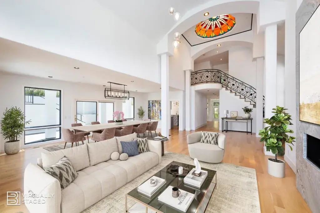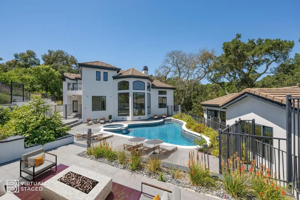 Set on a 3.1-acre, private and gated lot in one of Woodside’s most scenic settings, this exceptional, newly-updated residence offers the perfect blend of refined luxury and modern comfort – just minutes from town. Flooded with natural light from expansive floor-to-ceiling windows, the main home spans 3 levels and offers 4 bedroom suites, a library with fireplace, an office, and grand public spaces in +/-5,555sf. The open-concept living room boasts 24-foot ceilings, massive curved windows, a striking fireplace, and flows seamlessly into the sun-filled dining room. The chef’s kitchen opens to a huge family room with 10-foot ceilings, a dramatic fireplace, bar, and French doors opening to a patio-perfect for indoor/outdoor living. Designed for everyday comfort and entertainment, the home offers multiple terraces, temperature-controlled wine storage, and an expansive lower level replete with a gym, home theater, and full bath. Outdoor amenities include a pool with spa, tennis court, meandering paths that encircle the property, level lawns, and a vineyard. A detached 2BR/2BA, +/-1,135sf guest house is ideal for extended family or visitors. Access to the top-rated Woodside Elementary School completes this rare opportunity to experience a lifestyle of elegance, privacy, and convenience.