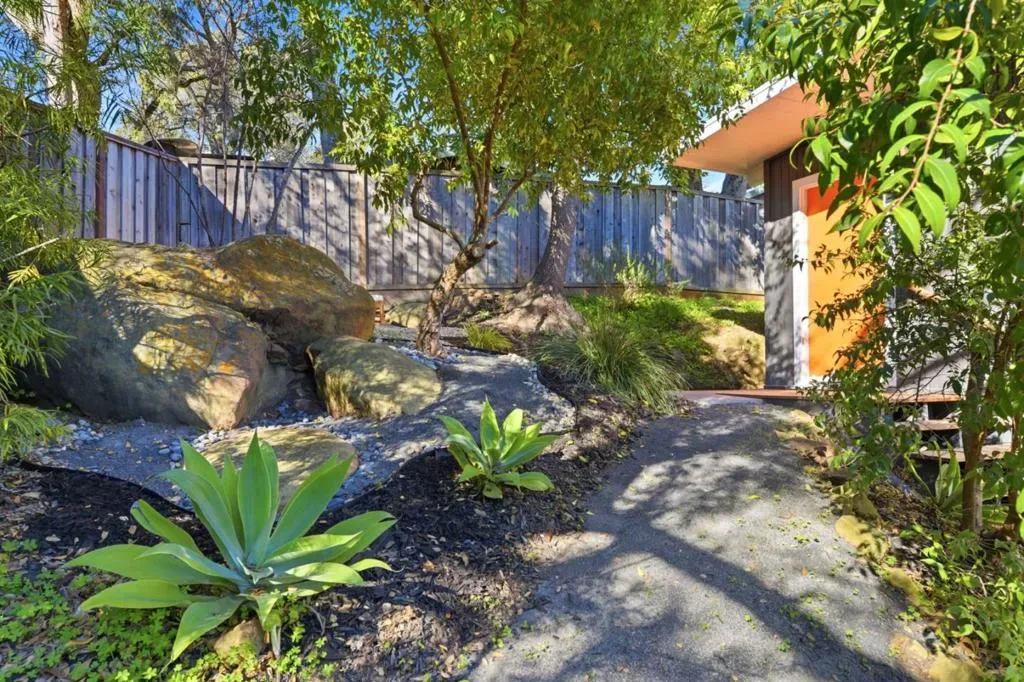 Mid-Century Modern enthusiasts will be delighted by this truly special Woodside retreat. Nestled in The Glens and surrounded by trees, this home sits atop an expansive preserve with access to hiking trails. Built in 1959, the home showcases iconic mid-century design with floor to ceiling glass that fills the upper level with natural light and opens to an expansive 900+ sq ft deck, seamlessly blending indoor-outdoor living and creating an ideal setting for entertaining. The modern kitchen is thoughtfully appointed with Carrara marble countertops and premium stainless steel appliances, including Bertazzoni, Viking, and Fisher & Paykel. The upper level features a spacious living room with fireplace, a motorized awning for the deck along with two bedrooms and a full bath. The lower level offers a versatile family room, generous storage, and carport access. The primary suite provides a peaceful retreat with its own bathroom and direct access to a secluded patio, perfect for relaxing among the natural surroundings. Other features and updates within the last year include a new roof, new deck, new A/C, new landscaping and a new driveway. A rare opportunity to enjoy timeless architecture, privacy, and the beauty of nature.
