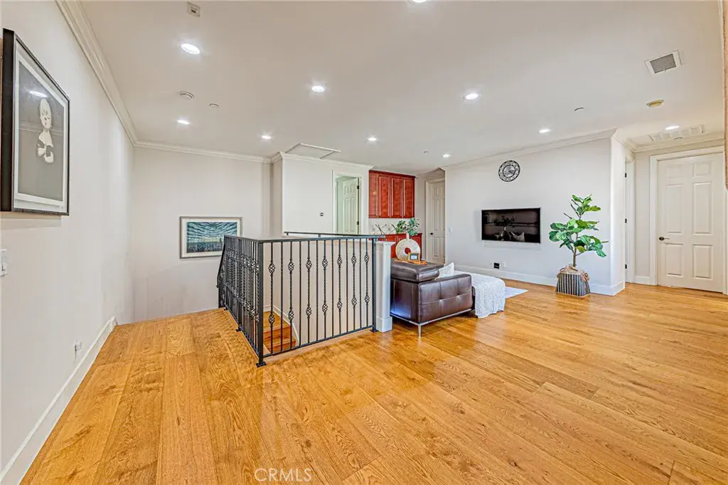 Enjoy unobstructed panoramic views of city lights, Catalina Island, and Disneyland fireworks from multiple rooms and the private primary suite balcony.