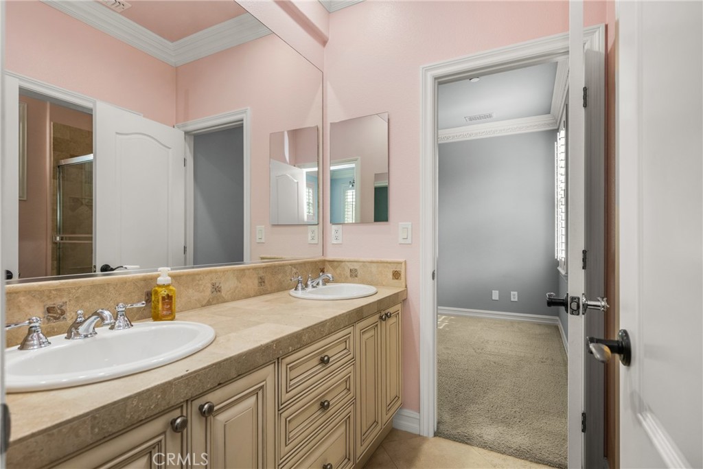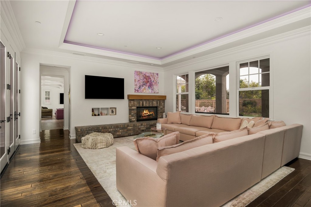 At the top of a quiet cul-de-sac in Kerrigan Ranch, where mornings begin with hillside views and evenings end in calm, this rare Model 3X home tells the story of Yorba Linda living at its best—private, elevated, and designed for both everyday comfort and unforgettable gatherings. The flag lot setting provides a private approach to the home, setting the tone for the sense of space and separation that defines this property. Inside, nearly 5,000 square feet unfolds with intention. The kitchen is the natural gathering place—anchored by an expansive island where mornings start with coffee and weekends stretch into long conversations. Granite countertops, stainless steel appliances, French cabinetry, and generous seating flow effortlessly into the family room, creating a space where hosting feels easy and life feels connected. Just beyond, the extended bonus room—rarely found and stretching the length of the three-car garage—becomes whatever the moment calls for: movie nights, celebrations, or quiet afternoons. With a dedicated bathroom that opens directly to the backyard, pool days transition seamlessly into evenings with friends. At the front of the home, a library option—currently a mirrored gym—offers a private space to recharge, reflect, or refocus. Upstairs, the primary suite is a true retreat. Step onto the balcony and take in rare Catalina Island views—a reminder of how elevated and special this setting truly is. Throughout the home, thoughtful upgrades add warmth and polish: engineered hardwood floors downstairs, crown molding with integrated LED lighting, custom light fixtures and mirrors, and marble and stone finishes in every bathroom. Outside, life slows down. The expansive lot becomes a private resort with a Pebble Tec pool, waterfall, slide, spa, and security fencing—designed for both family fun and elegant entertaining. Fresh exterior paint, artificial turf, and updated pool equipment ensure the focus stays on enjoying the space, not maintaining it. Even the details behind the scenes are elevated, from the LifeSource whole-house water filtration system to the fully customized three-car garage with faux-wood cabinetry, epoxy floors, and a Tesla charger. Located within the award-winning Placentia–Yorba Linda Unified School District, this home is zoned for the highly sought-after Yorba Linda High School, one of the most desired school assignments in the area and a defining part of the Yorba Linda lifestyle.