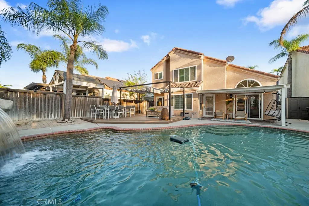 Nestled within the Villa Del Rio community, this thoughtfully updated home pairs a clean, modern interior with a backyard designed to truly stand apart. The overall presentation showcases a refined balance of comfort, functionality, and upgraded living throughout. Inside, vaulted ceilings create an immediate sense of openness and natural light, giving the home a tranquil and spacious feel well-suited for both everyday living and family life. The main living areas flow naturally, anchored by a remodeled kitchen with a modern aesthetic and cohesive finishes that carry throughout the home.