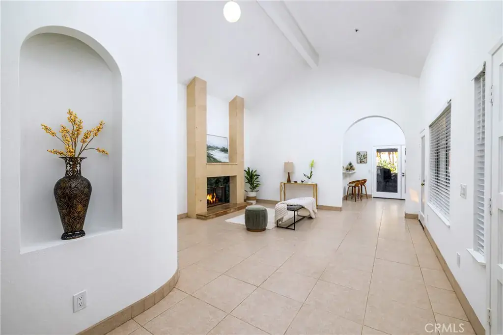 Remodeled Single-Story home offering 3 bedrooms and 2 full baths located in desirable Yorba Linda. A charming courtyard greets you with a large slate front patio, lush landscape and hilltop views of the majestic mountains. Double entry doors open to 12-foot vaulted ceilings, a skylight and a floor to ceiling marble fireplace. The open-concept space flows to the dining and kitchen areas with modern updates and sophisticated style featuring; Quartz countertops, stainless steel farmhouse sink and a Quartz counter bar with seating. Step outside and experience a private outdoor oasis with multiple spaces to dine, entertain or unwind featuring; a custom barbecue island with a refrigerator and seating. A wrap around patio overhang complimented by ledger stone planters, custom lighting, peaceful fountains and multiple double doors creating a true indoor/outdoor environment. The newly remodeled primary suite is a showstopper offering vaulted ceilings, a skylight and sliding doors opening to the private backyard. Dual custom closets; A walk-in closet with custom organizers and an additional mirrored closet across the hall. The en-suite bathroom has dual sinks with Quartz countertops and a spa inspired walk-in shower with Quartz and Mosaic tiles. Down the hall you will find 2 secondary bedrooms with new carpet and fresh paint. The full guest bath has been newly remodeled with dual sinks, Quartz countertops and a bath/shower combo with stunning Quartz and tile. Turnkey and move in ready.