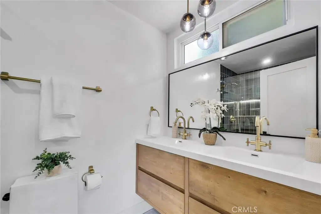 This stunning 4 bedroom, 3 bathroom Dual Master pool home is located on a completely flat half-acre lot at the end of a quiet cul-de-sac. Offering ample space for RV or boat parking, horses, and more. Upon entering the property, you’ll be welcomed by vaulted ceilings, abundant natural light, and carefully curated designer finishes. The fully remodeled kitchen features custom oak cabinetry, a large island, stone backsplash, and high end stainless-steel appliances. The home offers two luxurious primary suites—one upstairs with a spa-like bathroom, walk-in closet, beverage center, and new washer and dryer. Another primary is downstairs with a floating double vanity and custom tiled shower. All bedrooms feature wide plank white oak flooring and generous closet space. Step into your resort-style backyard, complete with a newly plastered pool and spa, built-in gas fire pit, covered patio, BBQ island (now converted to natural gas), pool fence, and new wireless pool controller, lights, and pool sweep. The outdoor space has been extensively enhanced with stonework, landscape lighting, a new irrigation system with a smart sprinkler box and timer, new plants, tree removal, and borders around flower beds. Ready for your stables, sport court and other outdoor activities.