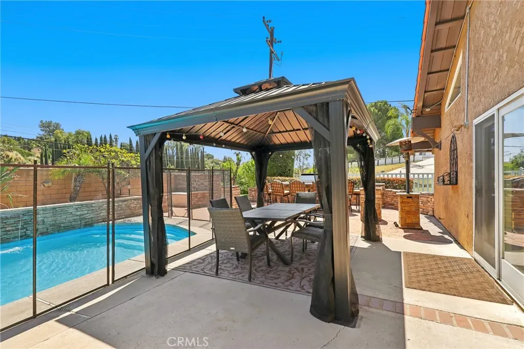 Property remarks or highlights: Located in a highly desirable area of Yorba Linda, this stunning home sits on an expansive quarter-acre lot and offers the perfect blend of elegance and comfort. Enter through a private courtyard featuring a tranquil water feature, cozy gas fire pit, and an extravagant custom metal door that sets the tone for what’s inside. Step into a grand living room highlighted by soaring ceilings, skylights, and a full wall of windows that flood the space with natural light. The formal dining room seamlessly connects to the kitchen, creating an ideal layout for both everyday living and entertaining. The kitchen features high ceilings, stainless steel appliances, granite countertops, and ample space for gathering, along with a new double oven, refrigerator, and 6-burner cooktop—perfect for any home chef. Beautiful chandeliers accent both the entryway and the wide staircase, adding a touch of sophistication. The main level includes a bedroom perfect for a home office, along with an oversized den offering flexible living space. Upstairs, the expansive primary suite is truly a retreat, complete with high ceilings, large picturesque windows, two walk-in closets, and an additional oversized sliding-door closet. The primary bathroom features dual sinks and a large Jacuzzi soaking tub with shower. Two additional bedrooms are located upstairs, thoughtfully positioned across a wide and open hallway. The backyard is an entertainer’s dream, conveniently located just off the kitchen. Enjoy a heated pool, a large bar area, and a built-in BBQ perfect for hosting gatherings. A charming gazebo and seating area sit just off the pool, while the oversized yard continues to impress with additional space off the living room and two more coveted seating areas—ideal for relaxing or entertaining. Additional highlights include 36 owned Sunrun solar panels paid for, a whole house Ventilation Fan and an EV charging outlet in the garage offering energy efficiency and modern convenience. Storage Sheds, and additional storage above garage. Home is Ideally situated near freeways and within award-winning school districts, this exceptional home offers both convenience and luxury.