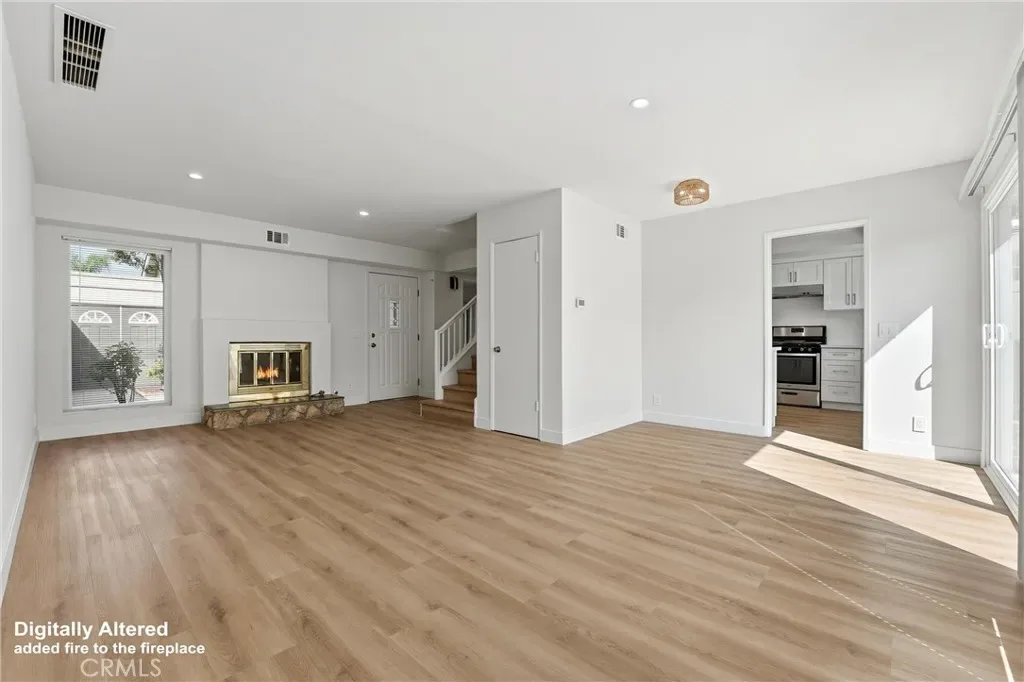 Welcome to 6686 Moselle Circle in the highly desirable Fair Green Homes community of Yorba Linda! This beautifully remodeled single-family attached home offers 4 bedrooms, 2.5 bathrooms, and an abundance of natural light throughout, creating a bright and inviting living environment. Thoughtfully upgraded from top to bottom, the home features all new dual-pane windows and sliding glass doors, enhancing both energy efficiency and indoor-outdoor flow. The brand-new kitchen showcases white cabinetry, quartz countertops, stainless steel appliances including a refrigerator, and soft-close doors and drawers, all designed with both style and functionality in mind. Enjoy LED recessed lighting, neutral-toned paint, and luxury vinyl plank flooring that flows seamlessly throughout the home. The versatile downstairs bedroom features a sliding glass door that opens to the gated private front courtyard, making it ideal for guests, a home office, or flex space. Upstairs, the spacious primary suite offers a relaxing retreat with an en suite bathroom complete with dual sinks, a large vanity, a walk-in shower with glass enclosure, and two closets. Two additional upstairs bedrooms provide generous closet space, while the hallway bathroom includes a tub/shower combination. Additional highlights include new window blinds throughout, a separate laundry room with washer and dryer included, and ample storage. The attached two-car garage offers direct access to the private front courtyard, while the backyard with white vinyl fencing provides a peaceful and private outdoor space perfect for relaxing or entertaining. Residents of Fair Green Homes enjoy access to community amenities including a pool and spa, while the interior living area is complemented by a cozy gas fireplace and a dining area adjacent to the living room. Conveniently located near the 91, 55, and 241 freeways, shopping, dining, and within the award-winning Placentia-Yorba Linda School District, this turnkey lease offers comfort, style, and an exceptional location.