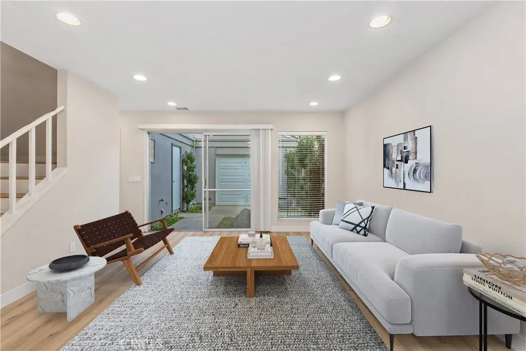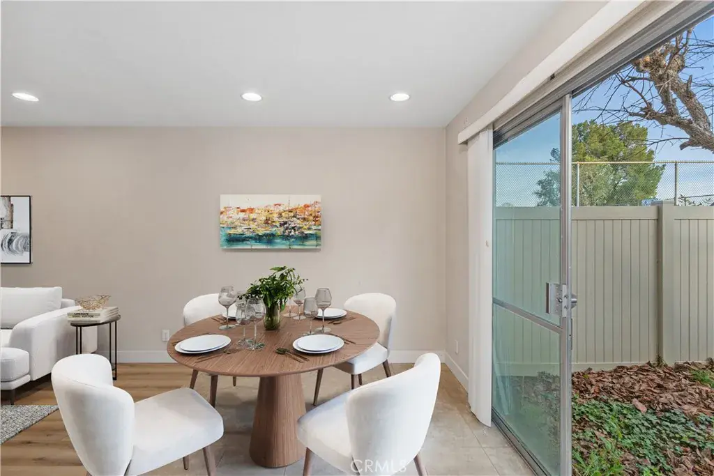 Discover this move-in-ready end-unit SFR attached residence in the highly desirable Fairgreens community, offering a rare combination of upgraded interiors, exceptional privacy, and one of the most family-friendly locations in the neighborhood. This 2-bedroom, 2-bath home spans 1,065 square feet and features only one common wall, creating a quieter, more private living experience. Flooring has been upgraded throughout, and extensive recessed lighting has been installed, including four can lights in each bedroom, as well as in the living room, kitchen, and bathrooms, resulting in a bright, well-lit, and welcoming interior. The functional two-story layout offers an easy flow between the living, dining, and kitchen areas, with sliding doors opening to a private patio. Both bedrooms are generously sized, with a walk-in closet in the primary and ample closet space in the secondary. What truly sets this home apart is its premium location within the community. The property is directly adjacent to the playground and four basketball courts, with a large open grassy field immediately behind the home, offering a rare sense of openness and space. The community pool and clubhouse are just steps away, along with tennis courts, making this an ideal setting for active lifestyles and families with children. The detached two-car garage is uniquely designed with dual garage doors, one at the front and one at the rear, providing added flexibility for parking, storage, or accommodating larger vehicles. Fairgreens is known for its expansive greenbelts, recreation areas, and quiet residential feel, all while being conveniently located near shopping, dining, schools, and commuter routes. A rare opportunity to own an end-unit, attached single-family style home with upgraded features and one of the most desirable locations in the community.