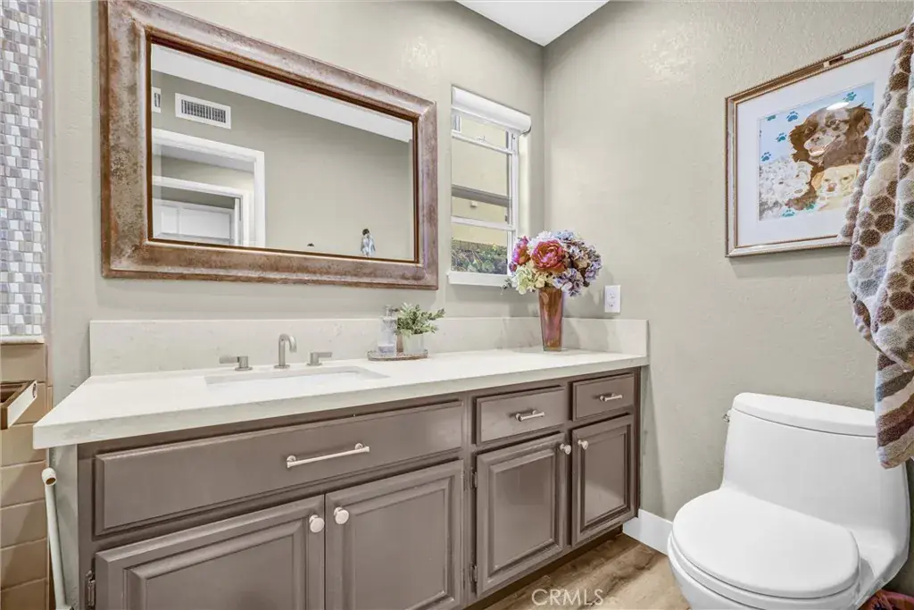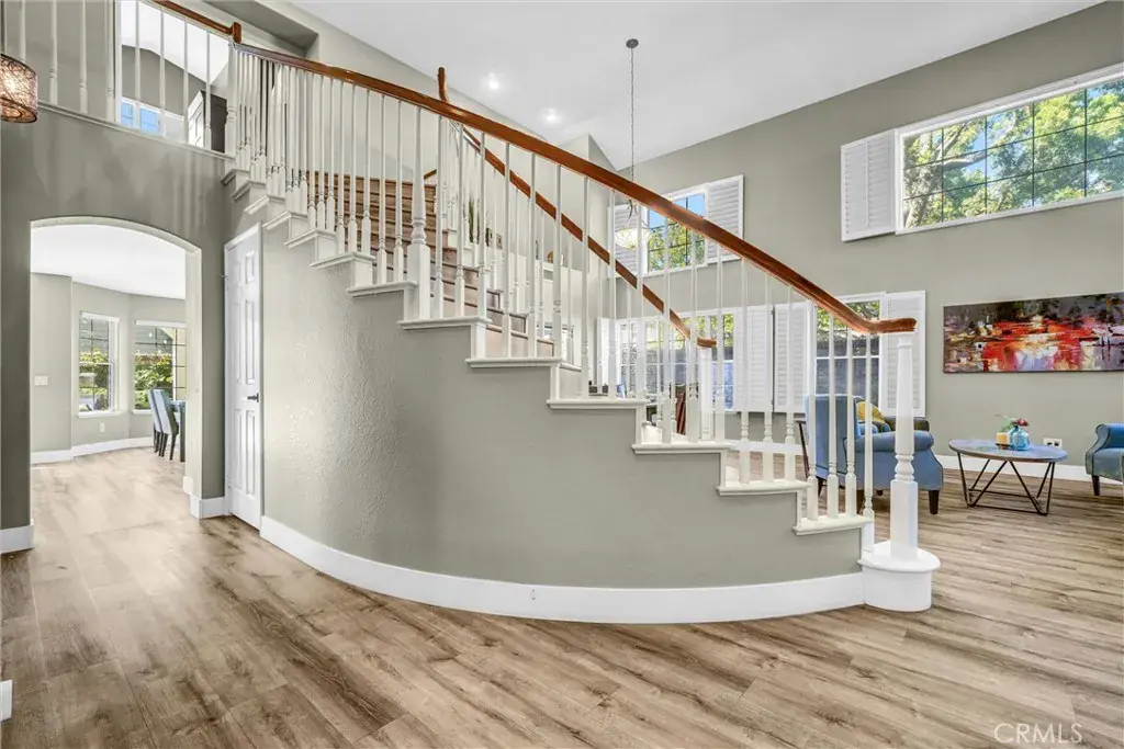 Welcome to Fairmont Terrace — Yorba Linda’s premier gated community!! Tucked away in a prime cul-de-sac location with only one neighboring home, this beautifully remodeled 4-bedroom, 3-bath residence offers exceptional privacy, security, added parking, and a rare sense of space. Step inside to discover a bright, open-concept floor plan featuring soaring ceilings, a sweeping staircase, and a spacious living room anchored by a custom fireplace flowing effortlessly into the formal dining area. The back of the home features a stunning wall of windows and French doors, bathing the interior with natural light. The family room complete with a cozy fireplace, opens to the kitchen and offers easy access to the beautiful backyard. The remodeled kitchen has newer stainless-steel appliances, stainless steel sink, quartz counters, an island and an ample pantry. Step outside to your backyard oasis, complete with a large patio cover, low-maintenance plants and hardscape perfect for outdoor gatherings. A downstairs bedroom and full bath offer the ideal setup for guests or multigenerational living. Upstairs, retreat to your luxurious primary suite with vaulted ceilings and a spa-inspired ensuite bath featuring new custom cabinetry, dual sinks, quartz counters, an oversized rain shower with mosaic tile, a freestanding soaking tub, and a make-up vanity. Both secondary bathrooms have also been fully redesigned with modern finishes and high-end materials. Additional upgrades include luxury plank vinyl flooring & 6” baseboards, recessed lighting, window shutters & custom blinds, dual-pane windows & French doors, new furnace, A/C system & ductwork, smart thermostat & smart garage door opener, dog run and new permitted electrical panel with power to add an EV charger or a solar system. Located close to top-rated schools, shopping, dining, freeway access, and Yorba Linda Regional Park, this home perfectly combines elegance, comfort, and modern convenience. Don’t miss your chance to own this turnkey beauty in one of Yorba Linda’s most desirable gated communities!