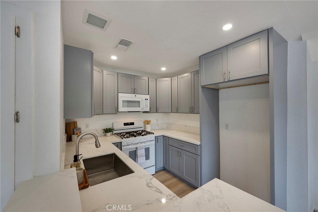 Welcome to 19114 Parkland in Yorba Linda, an upper end-unit tucked inside the sought-after Kellogg Terrace community. This floorplan features 3-bedrooms and 2-bathrooms. The kitchen, along with both bathrooms have new vinyl plank flooring, while the rest of the home has been outfitted with new carpet.