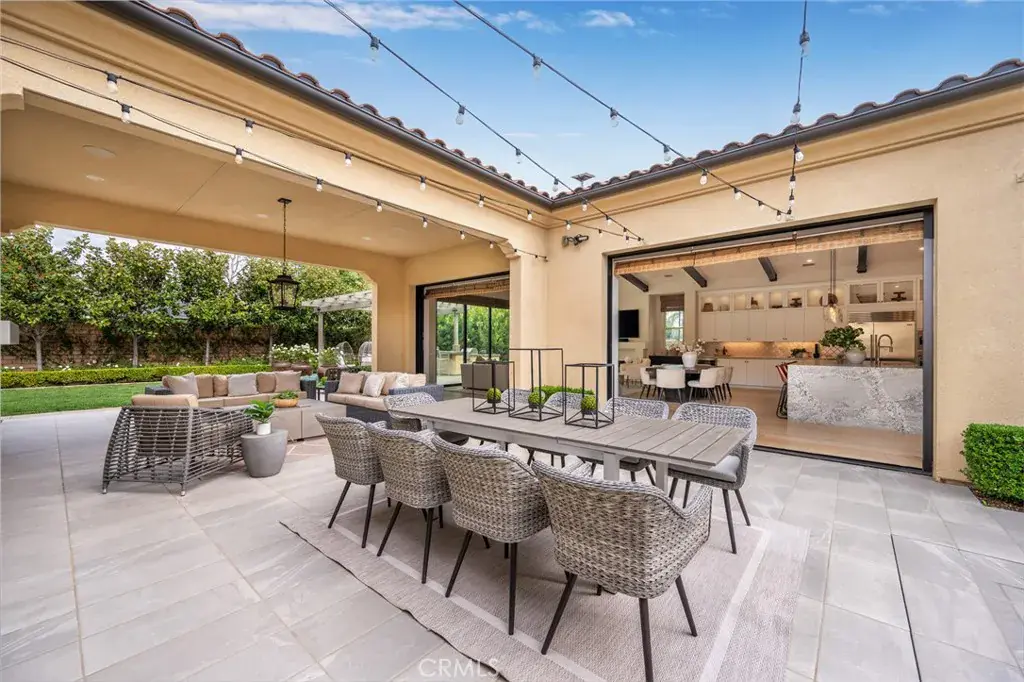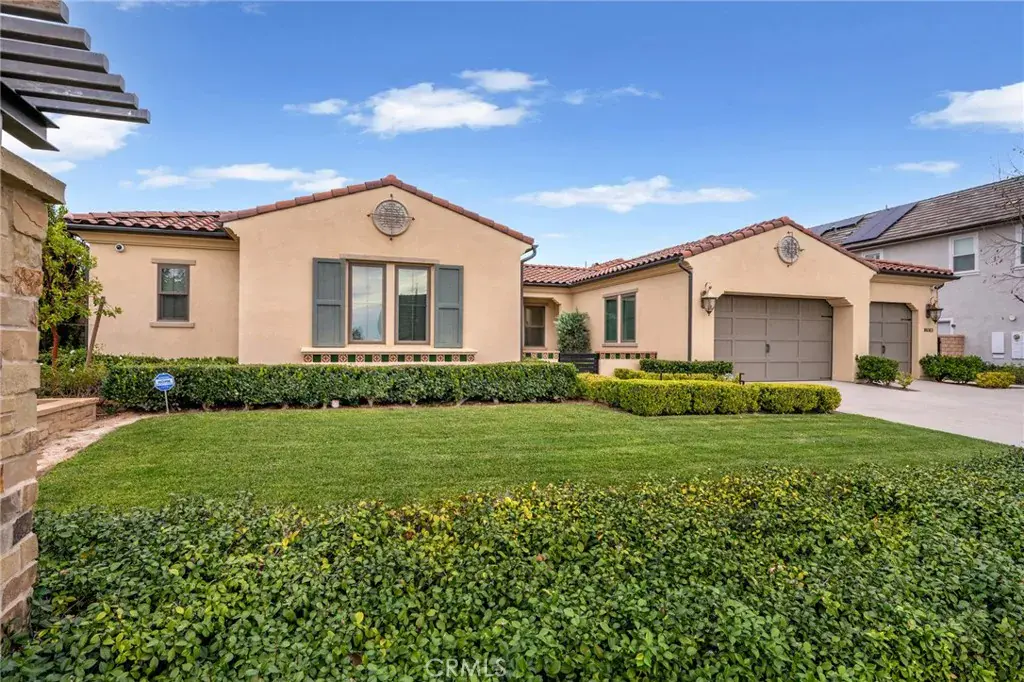 Located in the highly sought-after Wedgewood Community in the heart of Yorba Linda, this exceptional Shea-built Mediterranean estate offers a rare combination of luxury, scale, and single-story living. Originally designed as the model home for the tract, the residence showcases the most desirable builder upgrades, along with over $350,000 in additional owner-selected enhancements. Spanning 4,264 square feet, the home sits on an expansive 15,595-square-foot professionally landscaped lot-a rare find among newer construction. High ceilings, expansive living spaces, and elegant architectural details immediately create a sense of grandeur, all thoughtfully arranged around a stunning central courtyard featuring a fountain and outdoor fireplace and sitting area. The heart of the home is the primary living area, where a spectacular chef’s kitchen equipped with top of the line appliances opens to a spacious great room with beamed vaulted ceilings and multiple pocket sliding glass doors. These doors flood the space with natural light while seamlessly connecting the indoors to the courtyard and backyard. The backyard is a private retreat designed for both entertaining and relaxation, complete with a built-in BBQ area, lined with mature magnolia trees, spacious lawn and a rose garden. Plans for a future pool are also available. All four bedrooms feature en-suite or direct bathroom access, highlighted by a luxurious primary suite. Two additional rooms offer flexibility for a home office, formal dining room, library or optional fifth bedroom. Notable upgrades include; Whole-home Generac backup power system, Enterprise-level network infrastructure with Ethernet throughout, Optional Starlink internet backup (negotiable), Dual tankless water heater, Reverse osmosis drinking water system and whole-house water softener, Hunter Douglass remote-controlled window treatments, Advanced security system. This extraordinary residence offers the perfect balance of timeless design, modern infrastructure, and resort style living – ideal for today’s discerning buyer.