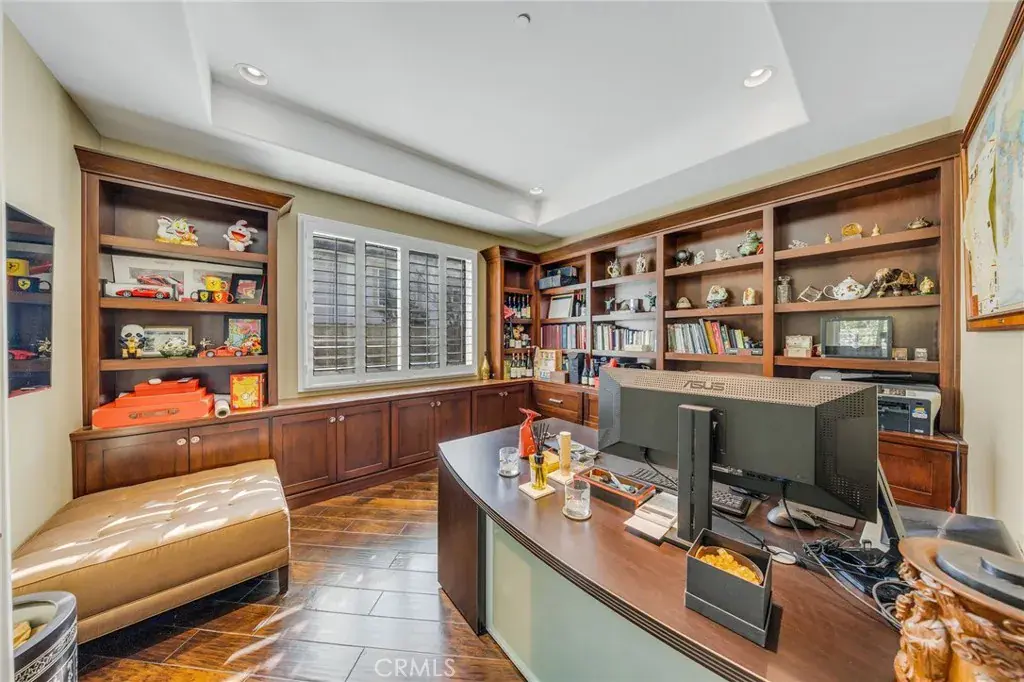 This exceptional Toll Brothers residence, located within the esteemed Vista Del Verde and Black Gold Golf Course communities, has been extensively upgraded beyond the builder’s offerings, creating a truly one-of-a-kind luxury home with over $350,000 in custom improvements. Highlights include a resort-style pool and spa, covered patio, and professionally designed front and rear landscaping, perfect for both entertaining and everyday living. Upon entry, a dramatic foyer welcomes you, featuring an elegant spiral staircase that leads to a rotunda-style upper hallway, setting the tone for the home’s architectural elegance. The chef’s kitchen serves as the heart of the home, boasting marble countertops, high-end stainless steel appliances, built-in refrigerator, and a large center island ideal for gatherings, casual dining, and daily meal preparation. Bay windows overlook the backyard, filling the space with natural light and enhancing the seamless indoor-outdoor connection. The main level also includes 1 bedroom, 1.5 bathrooms, and a dedicated office, offering flexible options for guests, multigenerational living, or remote work. Upstairs, the primary suite feels like a private retreat, featuring a spacious sitting area and a spa-inspired marble bathroom vanities, with generous closet space. Additional bedrooms each feature their own bath, and balcony with views provides a charming spot to relax and enjoy the surroundings. Additional builder upgrades include rich wood flooring, tankless water heaters, a carbon water filtration system, central vacuum, built-in speakers, and extra sound and thermal insulation between floors and roofing for enhanced comfort and efficiency. The home also showcases appx $150,000 in custom cabinetry, including beautifully designed closets throughout the upper level, built-in storage in the playroom and office, and a custom shoe cabinet system in the main garage, offering exceptional organization and functionality. Situated on a premium wide lot with approximately 20 feet of separation on each side, the home provides superior privacy, an increasingly rare feature in the neighborhood. The resort-inspired backyard completes the experience with a striking rock pool and waterfall, spa, covered lounge area, built-in stainless steel BBQ and refrigerator, and an inviting outdoor fireplace, perfect for year-round entertaining. just minutes from schools, shopping, and dining, this home offers luxury, privacy, and an unbeatable location.