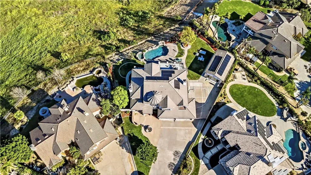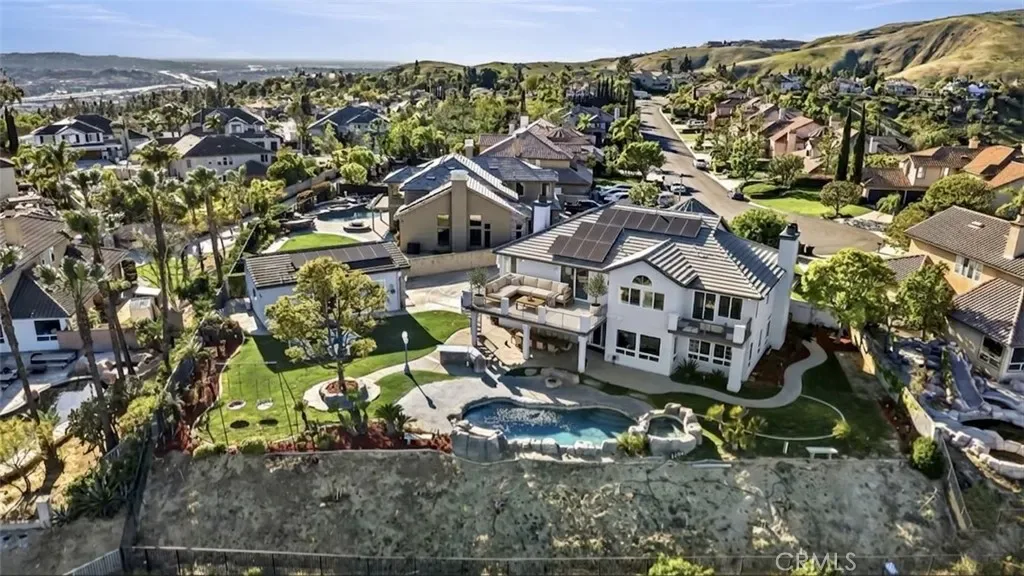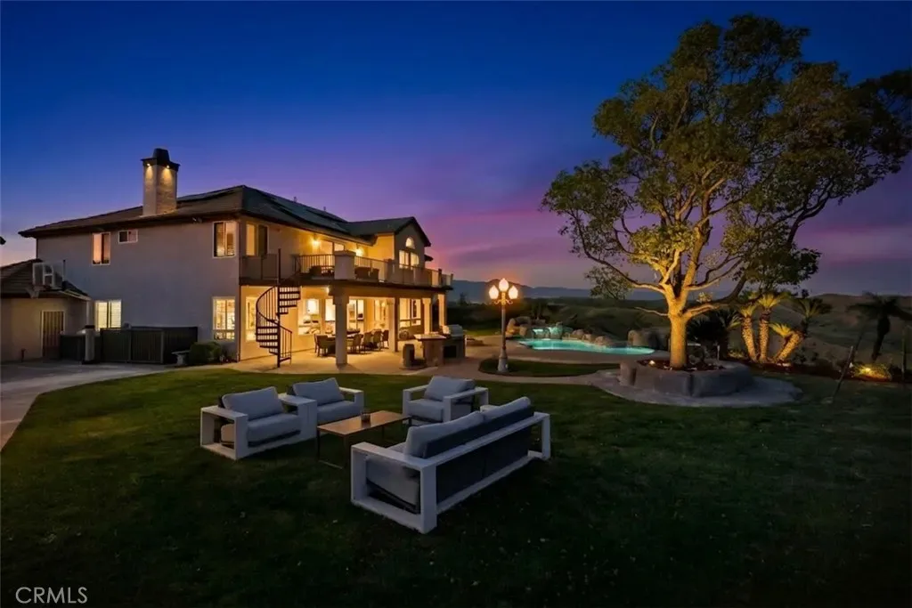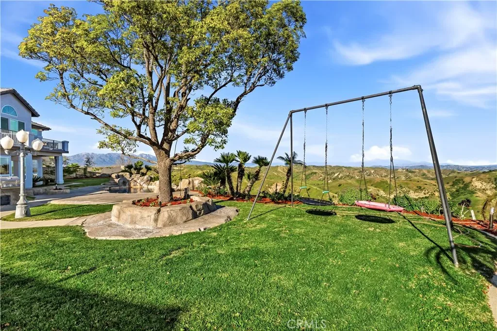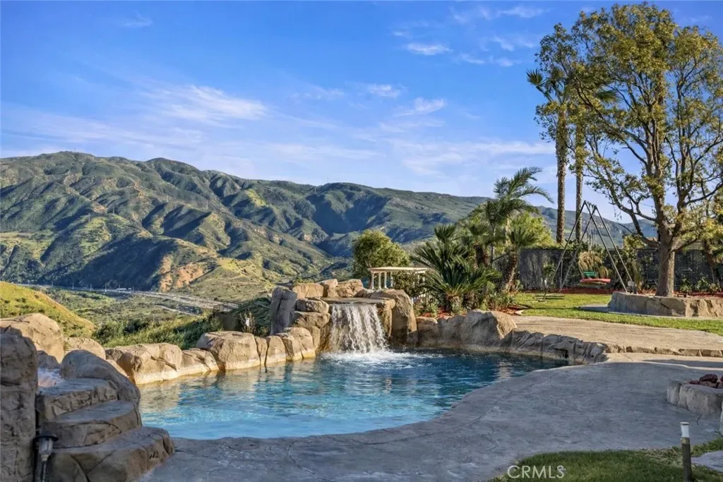 Situated on an expansive 29,000 sq ft lot with unobstructed views, the backyard is designed for resort-style living. Enjoy a recently updated PebbleTec pool and spa with rock waterfall, large covered patio, BBQ island, grassy play area with swing, and a cozy fire pit while taking in the spectacular scenery.