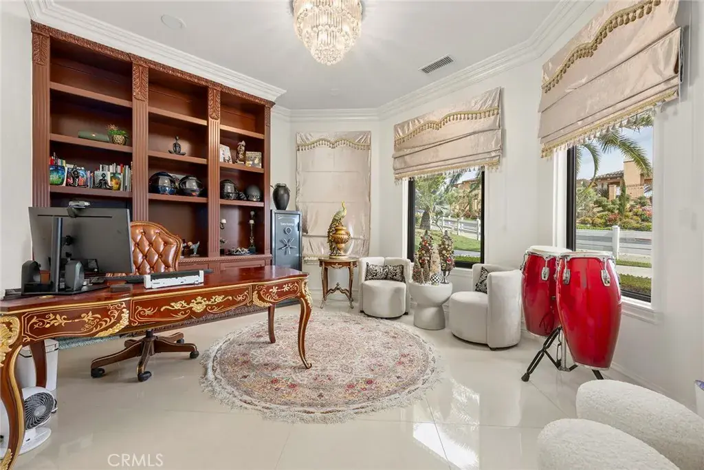VIEW,VIEW,VIEW,Exquisite Tuscan Estate with Unrivaled Views in Yorba Linda. Welcome to one of Yorba Linda’s most luxurious estates—an approximately 6,000 sq. ft. Tuscan-inspired masterpiece, set on 1.15 acres in the prestigious Mount St. Antonio Hills. With nearly 1,000 sq. ft. of newly added space and a meticulous renovation, this estate blends timeless elegance with modern sophistication. Step inside to soaring cathedral ceilings, brand-new oversized windows, and multiple sliding glass doors that fill the home with natural light and seamlessly connect indoor living to the stunning outdoor oasis. As you step outside, you’re immediately greeted by breathtaking 270-degree panoramic views across hills, city lights, and sunsets. This cinematic outdoor sanctuary is designed for awe and inspiration—perfect for hosting lavish gatherings or enjoying quiet mornings. The resort-style grounds are an entertainer’s dream: a sparkling pool and spa, covered outdoor kitchen and barbecue area, massive RV parking, lush gardens, and five towering palm trees create an unforgettable ambiance. The elegant Roman sculptures evoke the grandeur of the Venetian, blending art and architecture. Inside, the home features 5 spacious bedrooms, 4 designer bathrooms, a main-level office, and a private mother-in-law suite. The luxurious primary suite offers a private loft, spa-like ensuite, and view balcony—the perfect retreat. The chef’s kitchen is a showstopper: custom cabinetry with oversized drawers, premium Wolf appliances, built-in coffee system, Dacor refrigerator, and central vacuum. A separate, fully equipped gym structure provides a private space for wellness just steps away from the main house. Additional highlights include: 4-car garage with epoxy floors and custom cabinetry Egyptian marble columns and fireplaces, radiant heated floors Smart home technology: motorized blinds, security cameras, smart A/C, roof/fire sprinklers Fully paid solar system Lush landscaping with rose garden and fruit orchard (lemon, orange, avocado, cherry, fig, kumquat, dragon fruit & more) Greenhouse for year-round homegrown vegetables This is not just a home—it’s a private resort, a personal retreat, and a lifestyle statement. Opportunities like this are rare. Schedule your private tour today and experience the magic for yourself. Seller is very motivated—schedule your private tour today and experience the magic for yourself.