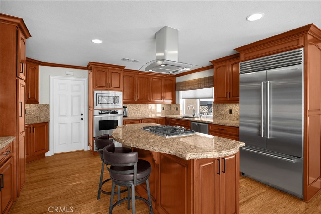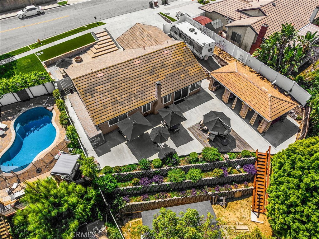 BEAUTIFUL, SINGLE-STORY home in a highly sought-after neighborhood in Yorba Linda. This home features a bright and open floor plan with 3 bedrooms, and 2 bathrooms with 1,500 square feet of spacious living space. Beautiful maintained front yard includes artificial turf, spacious courtyard area with wood burning fire pit, custom lighting and security camera system. You are welcomed at the entry into the spacious living room which features a vaulted ceiling, a beautiful fireplace, recessed lighting and windows that bring in plenty of natural lighting. The beautifully designed kitchen features beautiful cabinetry which provides ample storage, stainless steel appliances including a gas cooktop and a built-in subzero refrigerator, kitchen island and breakfast nook that has beautiful views of the backyard. The Primary Bedroom Suite features a LARGE bedroom area with double closets, and beautiful ensuite bathroom. Down the hall are 2 generously sized bedrooms with plenty of closet space and a beautiful hall bathroom. Third bedroom is currently being used as an office. This private backyard is SPECTACULAR AND IS MADE FOR ENTERTAINING!!! This stunning backyard features a Cabana with FULL SIZED Kitchen and lounge area. The outdoor kitchen includes TWO high end Wolf ranges with overhead range hood with fan and lighting, 2 drawer refrigerator, ice maker, sink, multiple drawers, cabinetry for storage and counter bar seating. The lounge area includes wood plank ceiling, ceiling fans, recessed lighting, and Automatic mounted TV. This private backyard also features a SPACIOUS concrete patio area with gas fire pit, dog run, RV Parking, beautiful mature landscaping and on the lower level a 20 x 12 Shed that includes a farm sink, shelving and A/C. Additional features of the property include a spacious 2 car garage with shelving, NEW water softener, Smart Home System, Alarm System, update ducting with added vents in kitchen and living room, plumbing has been partially re-piped with copper, and so much more! This home is in the Award-Winning Placentia-Yorba Linda School District AND WALKING DISTANCE to Yorba Linda Middle School and Veterans Sport Park. Located half a block from Yorba Linda bike/walking trail, close to the Nixon Library, Yorba Linda Public Library, Yorba Linda Town Center, restaurants, shopping and entertainment. Come view this beautiful house and make it yours today!