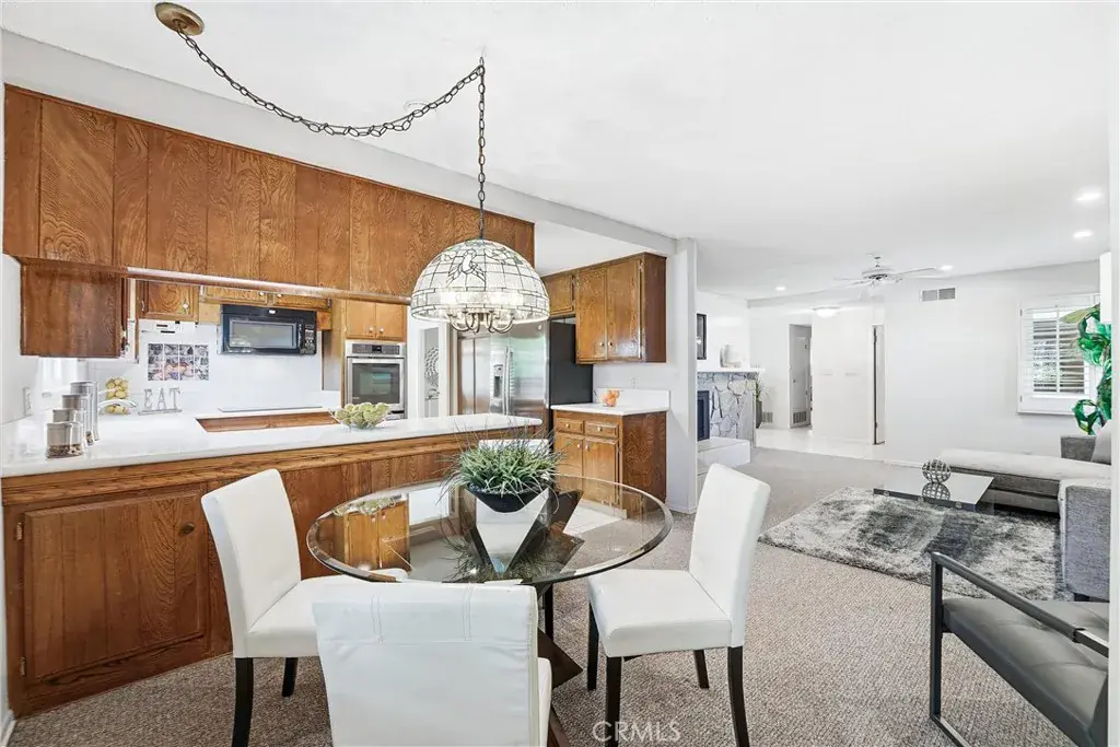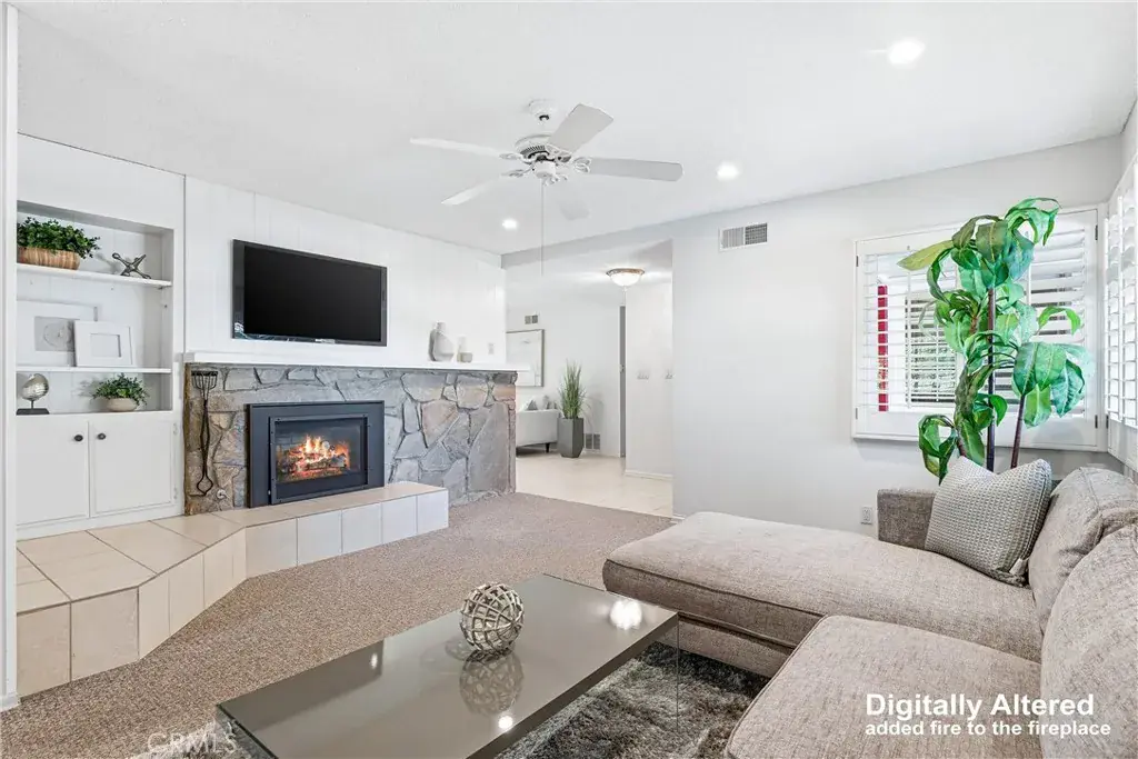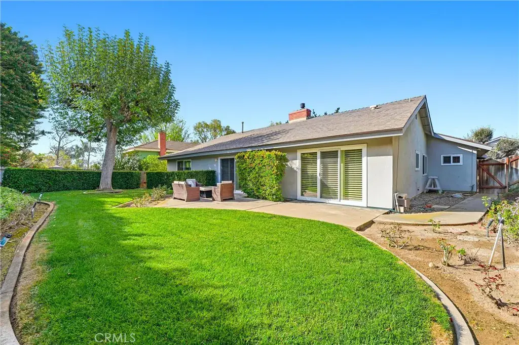 In the heart of Yorba Linda, tucked away on a quiet street just steps from highly rated schools, parks, golf courses, and shopping, this beautifully maintained ranch-style home offers thoughtfully designed living in one of the area’s most sought-after, family-friendly neighborhoods. From the inviting double-door entry to the manicured lawn and garden beds, the home radiates timeless curb appeal and classic charm. Inside, an open and well-planned floor plan blends comfort and functionality, creating the perfect setting for everyday living and effortless entertaining. Natural light fills the formal living room, where a cozy fireplace, easy-care tile flooring, and a large sliding door open to the lush backyard. The spacious family room features a second fireplace and flows seamlessly into the kitchen, creating a warm and welcoming gathering space. The open-concept kitchen offers abundant cabinetry, generous prep space, stainless steel appliances, and easy connection to the heart of the home — ideal for hosting family and friends. All four bedrooms are generously sized, including a versatile fourth bedroom perfect for a home office or guest retreat. The private primary suite features dual closets and an en-suite bath complete with a spacious vanity and walk-in shower. Additional highlights include recessed lighting, ceiling fans, newer windows throughout, inside laundry, and a convenient powder bath off the family room. Step outside to your own private oasis, where lush landscaping surrounds a spacious patio designed for true indoor-outdoor California living. Whether enjoying morning coffee, weekend BBQs, or evening gatherings, this backyard is made for creating lasting memories. Perfectly located just steps from a community play park and within walking distance to award-winning PYLUSD schools, this exceptional home also offers easy access to the Yorba Linda Country Club, scenic trails, Town Center shopping and dining, and local favorites like the Nixon Library — all with no HOA and no Mello-Roos. Comfortable, convenient, and move-in ready, this is single-story Yorba Linda living at its finest.