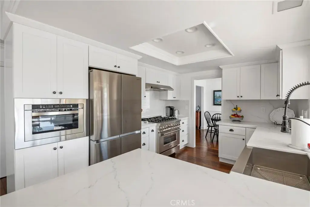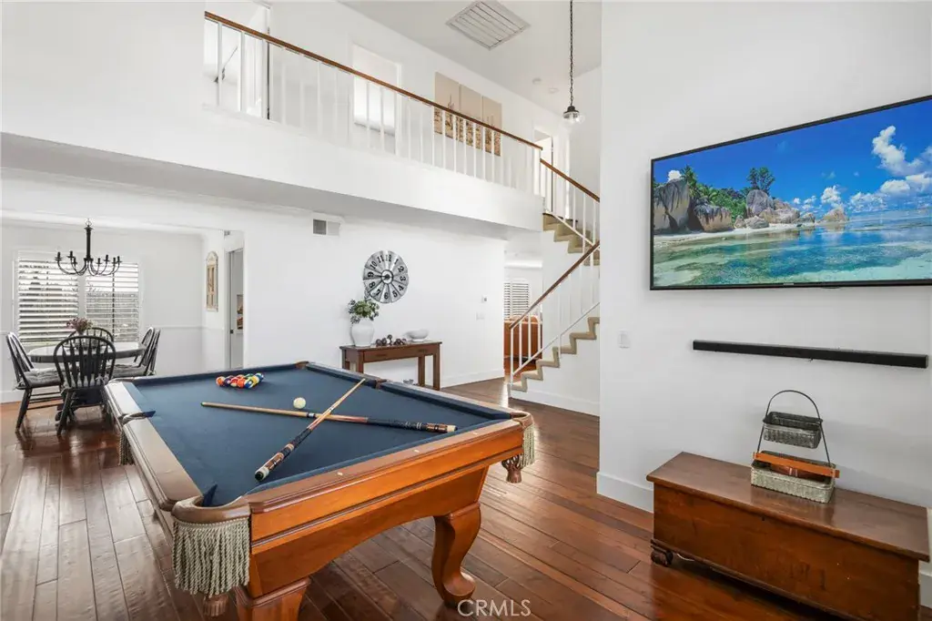 Set within one of East Yorba Linda’s most coveted neighborhoods, this exquisitely upgraded residence embodies timeless sophistication and elevated California living. Positioned on a premier interior cul-de-sac, the home greets you with soaring vaulted ceilings, rich wood flooring every where except the stairs, plantation shutters, and an abundance of natural light that enhances the graceful flow between formal living and dining spaces. The designer-remodeled kitchen is both striking and functional, appointed with crisp white shaker cabinetry, quartz surfaces, stainless steel appliances, and a farmhouse sink. It opens seamlessly to an inviting family room highlighted by a classic brick fireplace and custom built-ins — an elegant yet comfortable setting for entertaining or relaxing evenings at home. The expansive primary suite serves as a serene retreat, featuring a dedicated built-in workspace, mirrored wardrobes, and a spa-caliber bath thoughtfully redesigned with dual vanities and an oversized walk-in shower. Generously proportioned secondary bedrooms and tastefully curated baths continue the home’s elevated aesthetic and attention to detail. Outdoors, the private backyard transforms into a true resort-inspired sanctuary. A sparkling pool and spa anchor the space, complemented by a covered patio, multiple conversation areas, built-in BBQ, manicured lawn, and open-sky views — creating an exceptional environment for refined entertaining or tranquil relaxation. A three-car garage, exceptional natural light, and evident pride of ownership complete this remarkable offering. Ideally located near top-rated schools, premier parks, upscale shopping, and dining, this turnkey residence presents an outstanding opportunity to enjoy comfort, prestige, and lifestyle in equal measure.