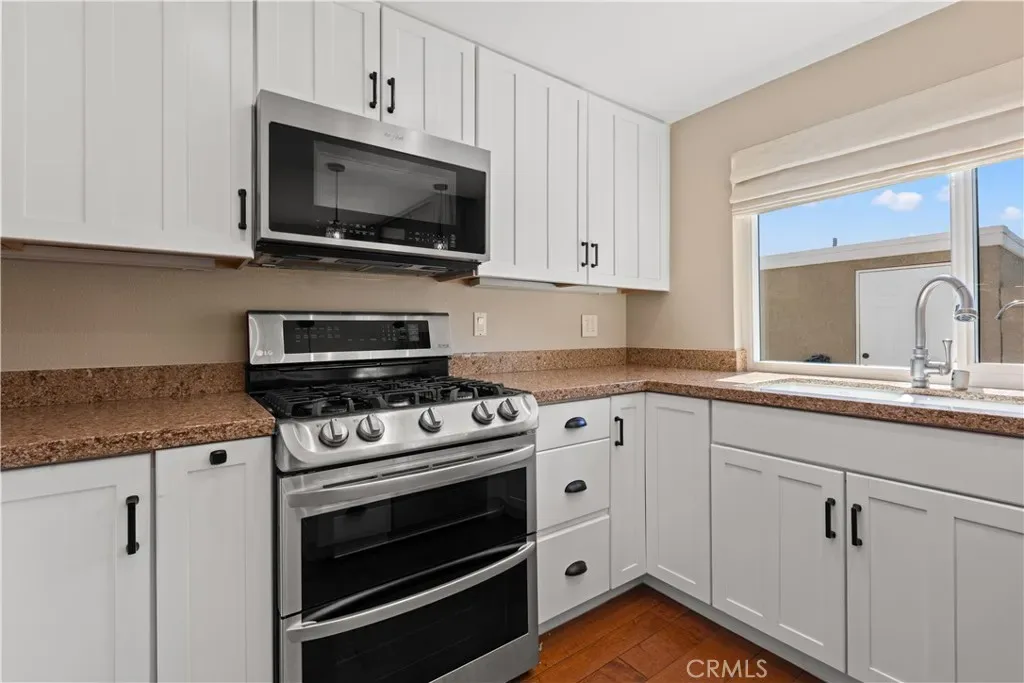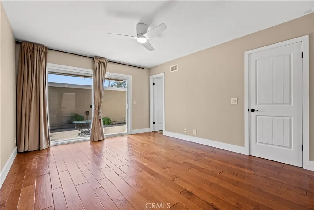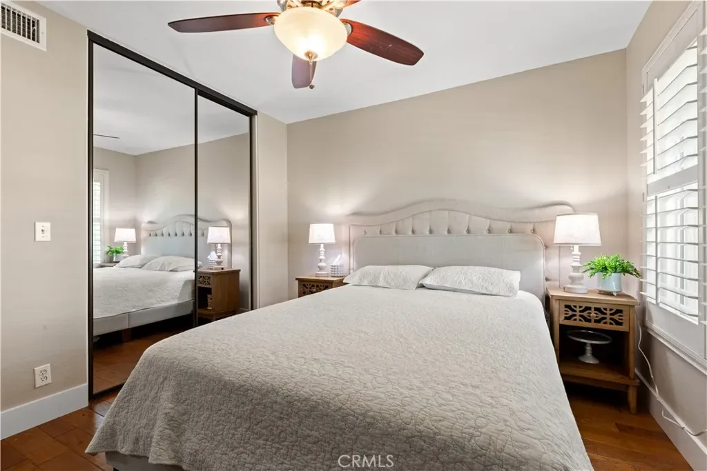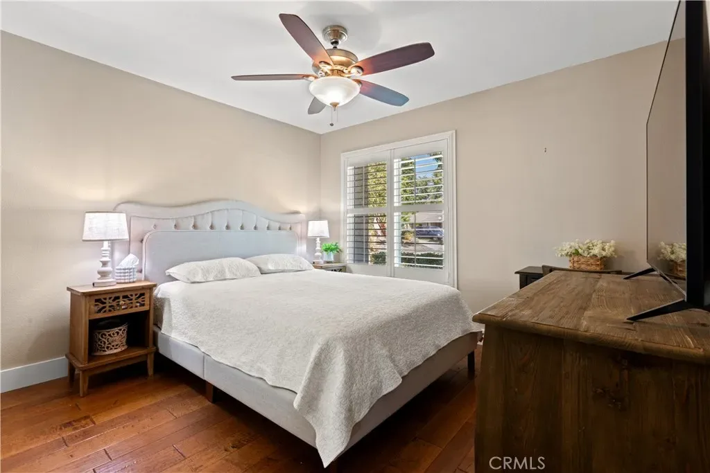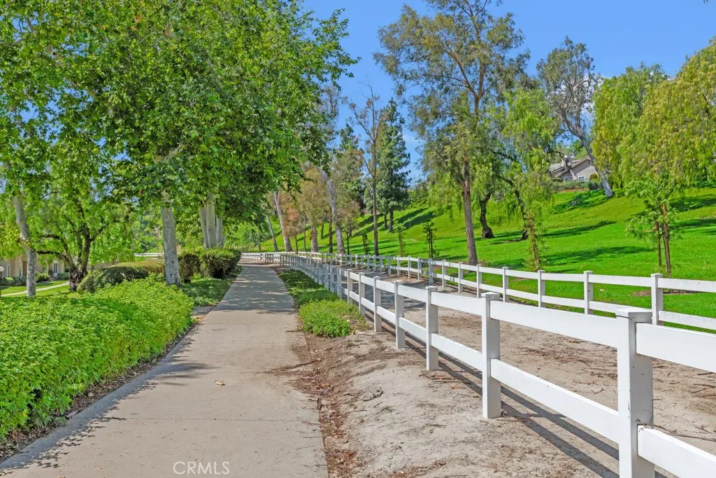 Welcome to this beautifully maintained single-level townhome located in the highly desirable Rancho Dominguez community of Yorba Linda. Ideally positioned as a private end unit, this home enjoys a serene setting with lush greenbelt views from nearly every window, creating a peaceful and inviting atmosphere. Step inside to discover a bright, open-concept layout enhanced by vaulted ceilings and an abundance of natural light. The home features engineered wood flooring throughout, complemented by classic plantation shutters and updated baseboards and painting completed in 2024. The spacious living area is centered around a charming whitewashed brick fireplace and flows seamlessly into the dining space, which opens to an expansive outdoor patio, perfect for both relaxing and entertaining. The kitchen is thoughtfully designed with ample white cabinetry, granite countertops, and a functional peninsula ideal for casual dining or morning coffee. Additional highlights include a gas stove, double oven, and newer appliances, including a dishwasher and microwave installed in 2025. The primary suite offers a tranquil retreat with direct access to the patio through a newly installed sliding glass door. This generously sized bedroom includes a built-in dresser within the closet and an en-suite bathroom. Two additional bedrooms provide flexibility for guests, a home office, or hobbies, each featuring ceiling fans, shutters, and consistent flooring throughout. Outdoor living is elevated with a larger-than-average patio that includes ambient lighting and automatic sprinklers, making it both functional and inviting year-round. Additional upgrades include a new HVAC system installed in 2024, ensuring comfort and efficiency. The home also offers access via the patio to a detached two-car garage and is part of a well-maintained community with amenities such as pools, tennis courts, and playgrounds. Conveniently located near shopping, dining, top-rated schools, and freeway access, this property combines comfort, style, and an exceptional location. Don’t miss this opportunity to own a move-in ready home in one of Yorba Linda’s most sought-after neighborhoods.
